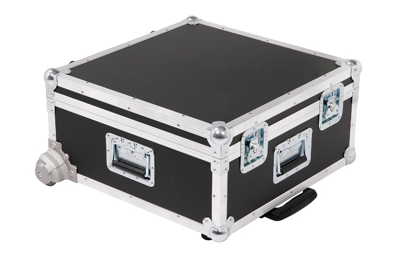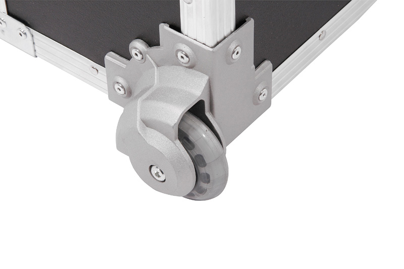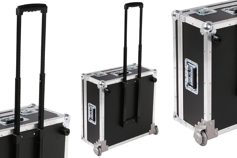 mit aufgesetzten Eckrollen und Trollygriff mit