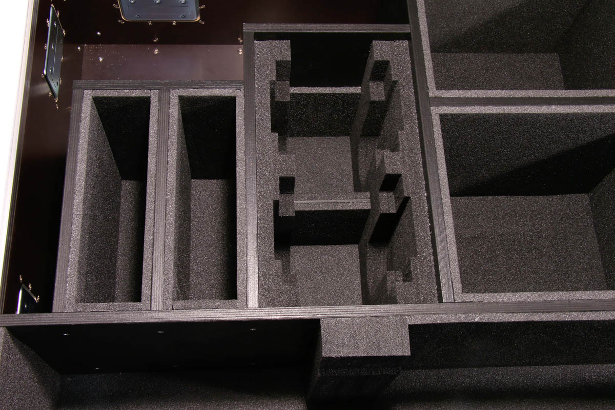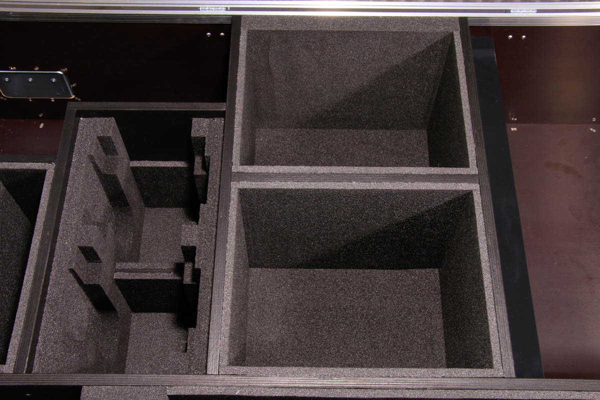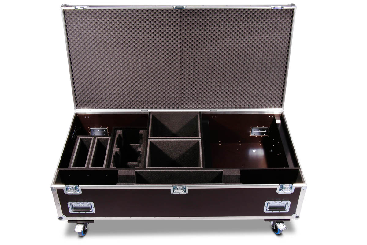 Transporttruhe für 5 unterschiedliche Scheinwerfer und Stativ.