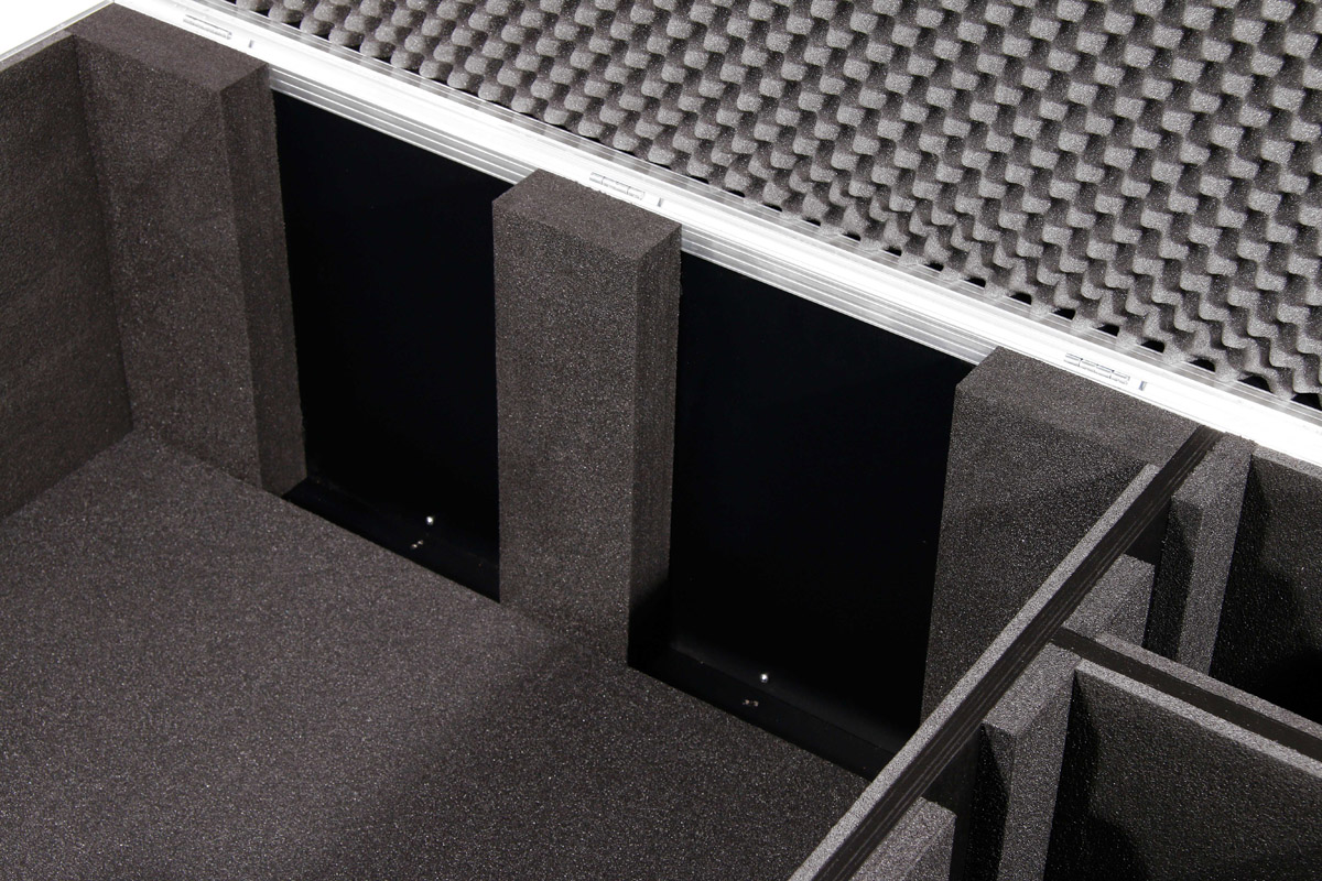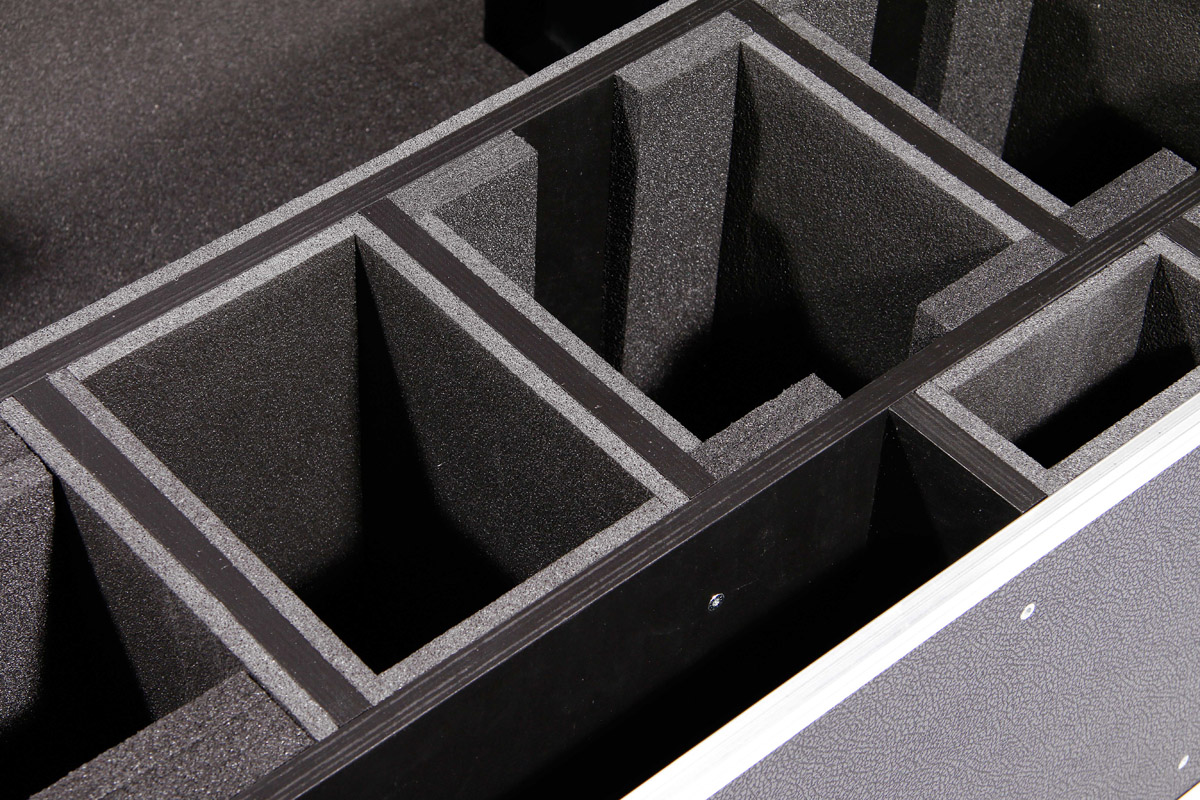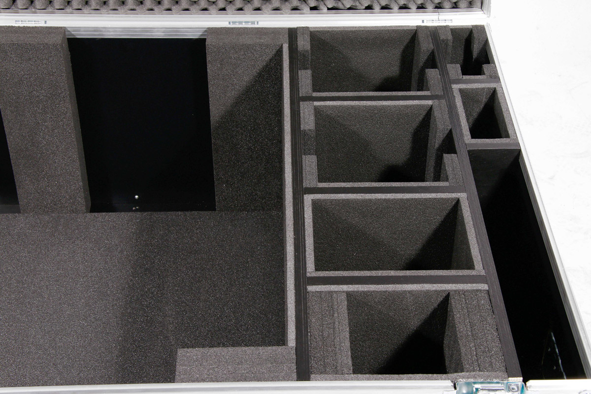 Optimierte und sehr wiederstandsfähige Truhe für Medien Beamer und Zubehörfächer für Objektive, Ersatzlampen und mehr.