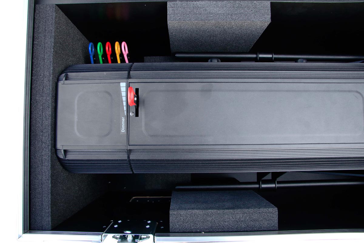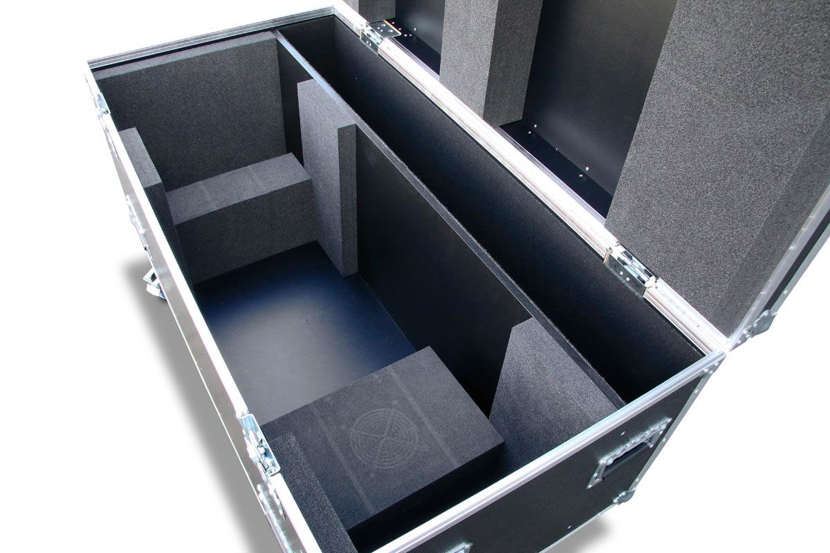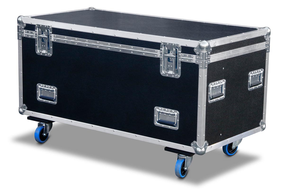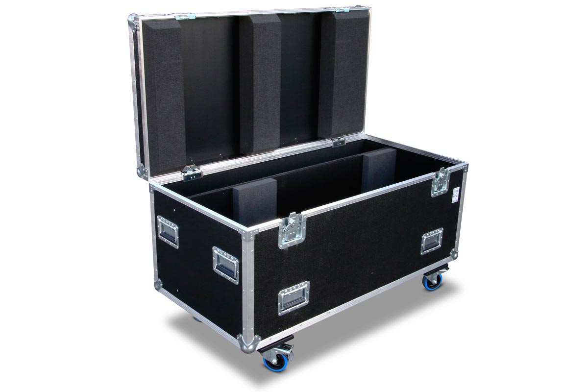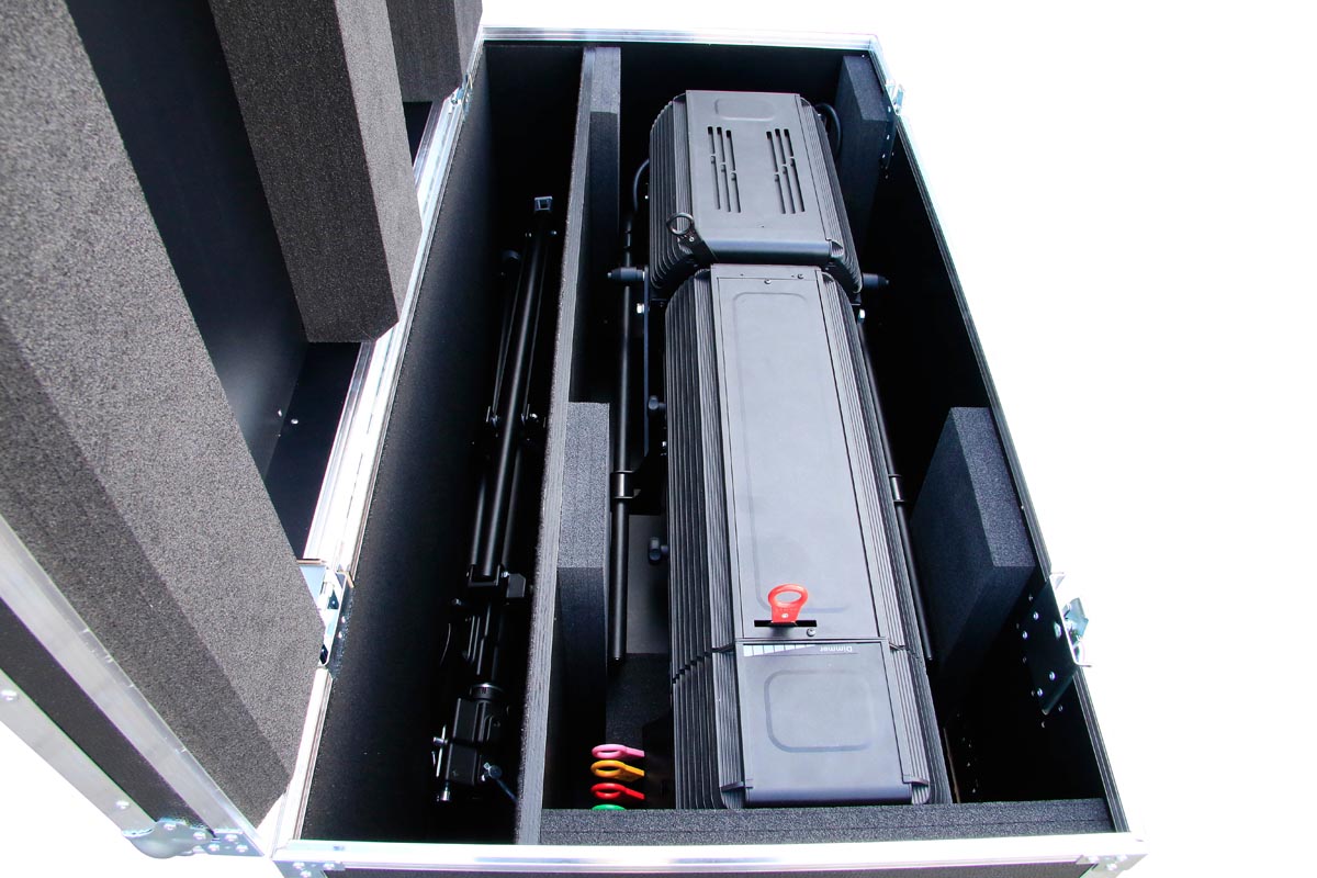 Truhe in 9 mm Profiqualität für ein Verfolger Arthea Luce TE 028 1200W und einem gefilzten Fach für Muraro MU003SB Stativ.