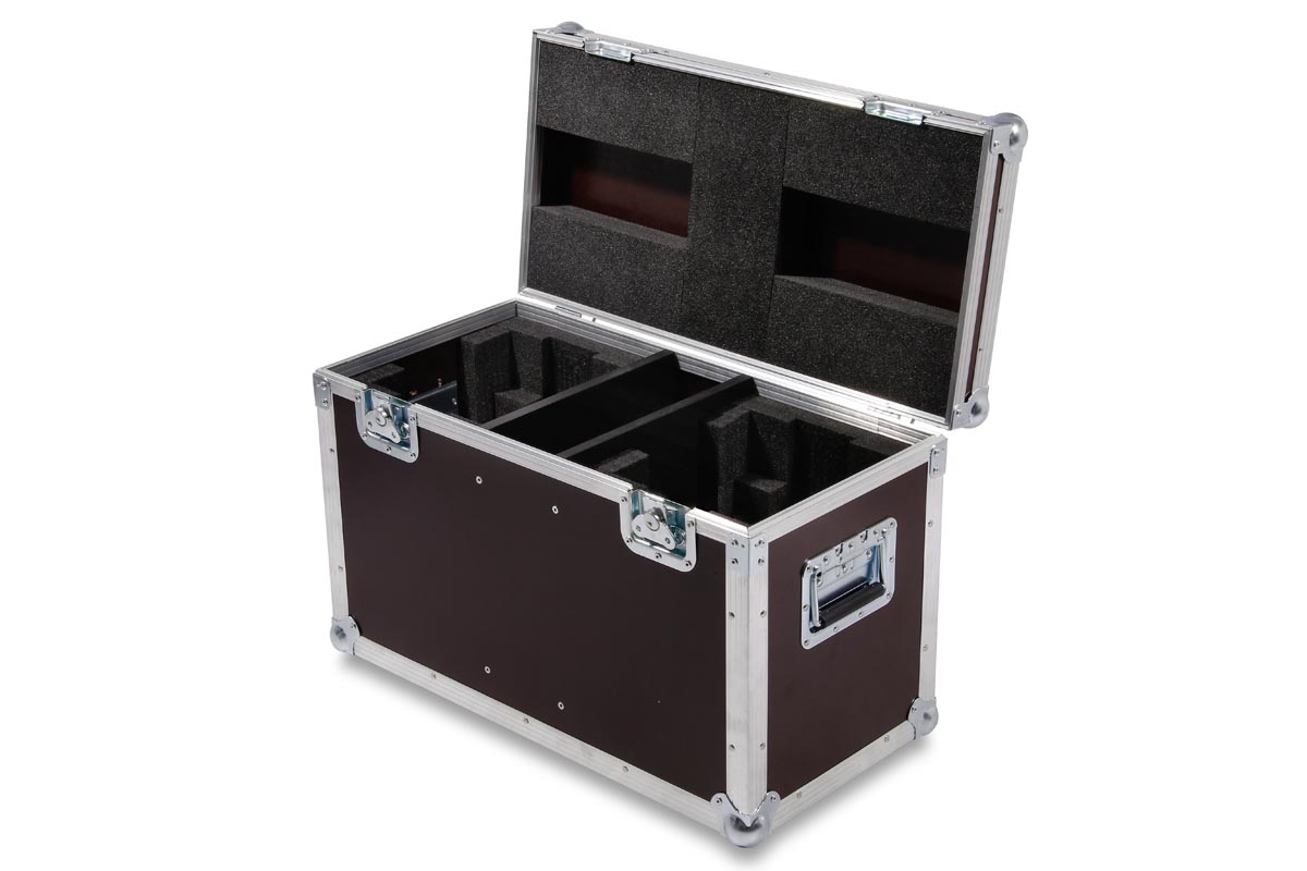 Für zwei Beam und Flower Moving-Head von Eurolite bietet unser Transporttruhe Platz.