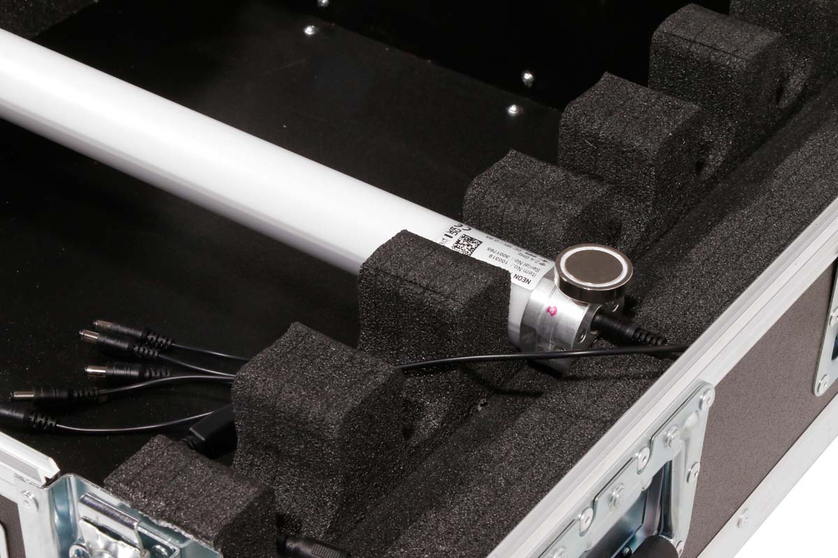 Der Innenraum verfügt über eine passgenaue Schaumstoffpolsterung für 6 ApeLabs Neon Tubes