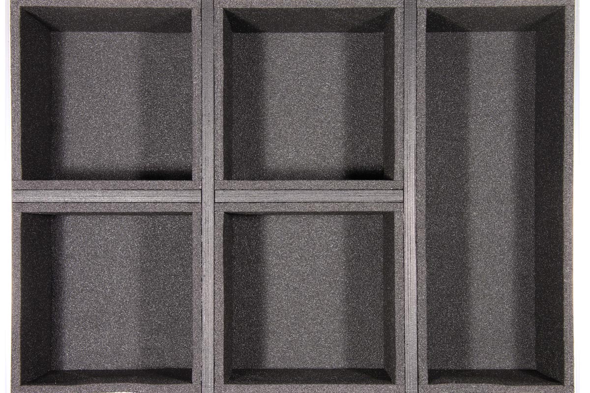 In vier, mit Schaumstoff gepolsterten Kammern, sitzen die Cameo Flat PAR Can sehr sicher.