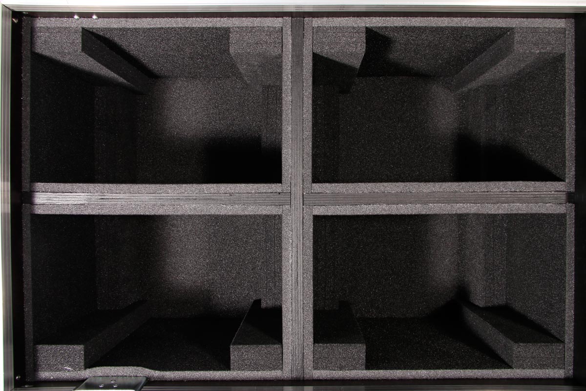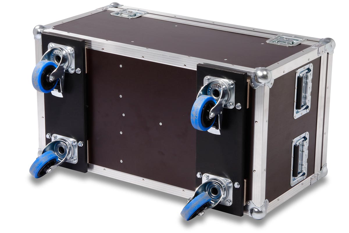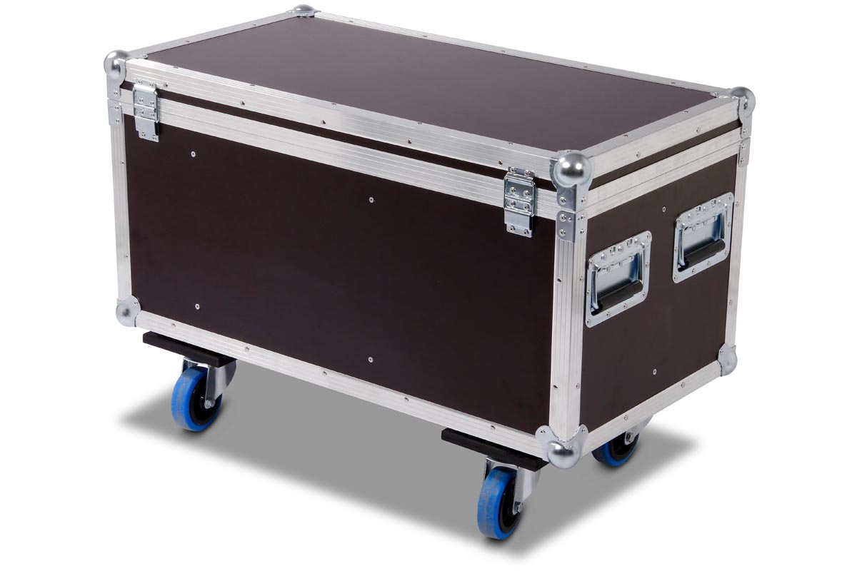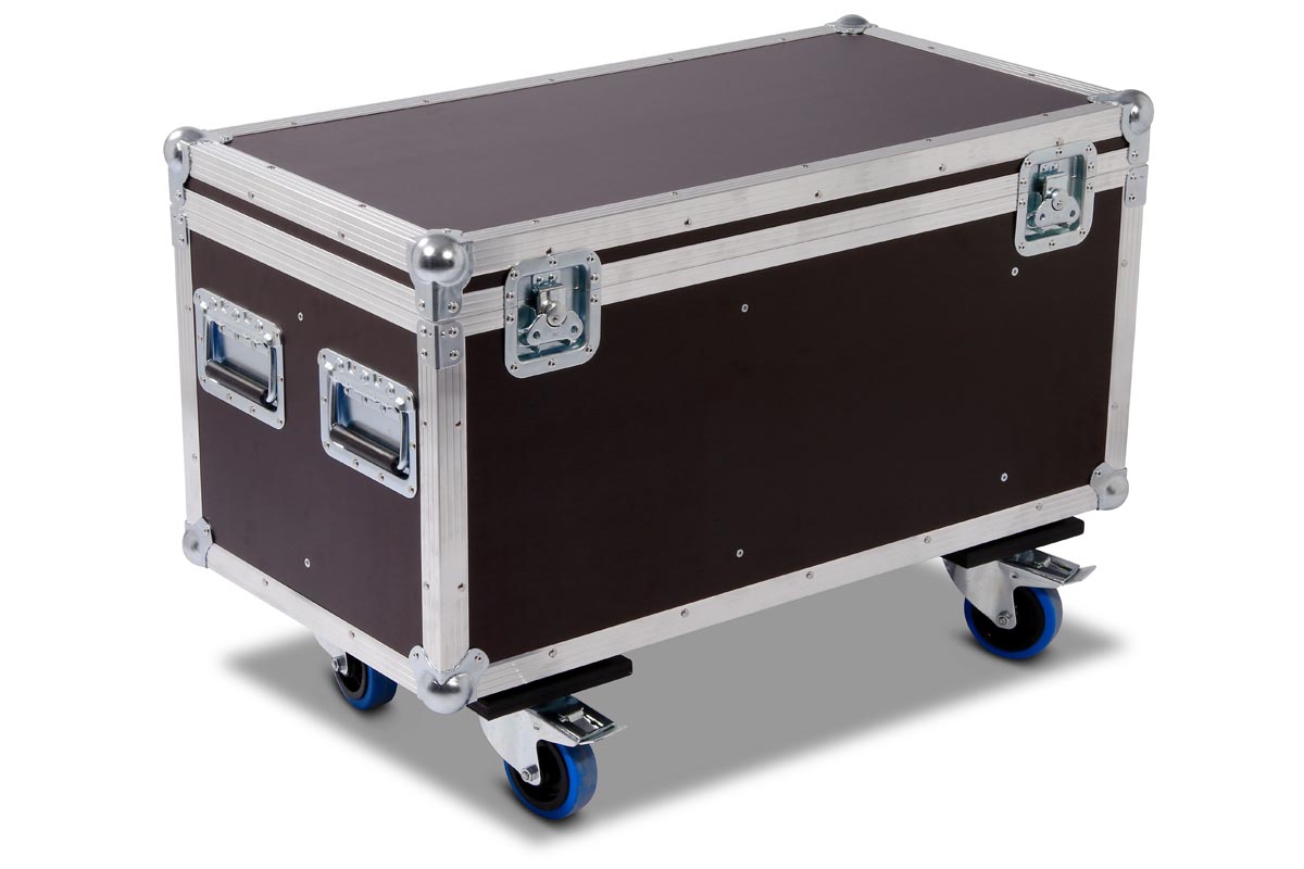 Truhencase aur Rollen für 4 Stück Cameo Flat Pro Par Can 12 mit montiertem Half Coupler