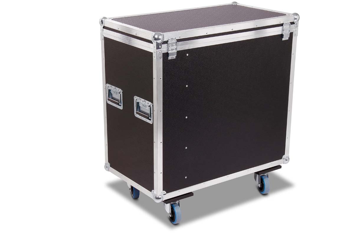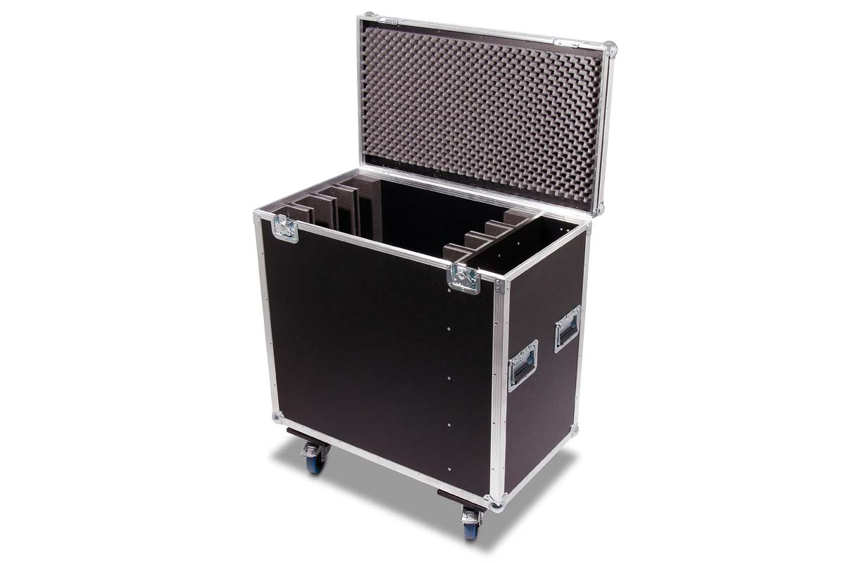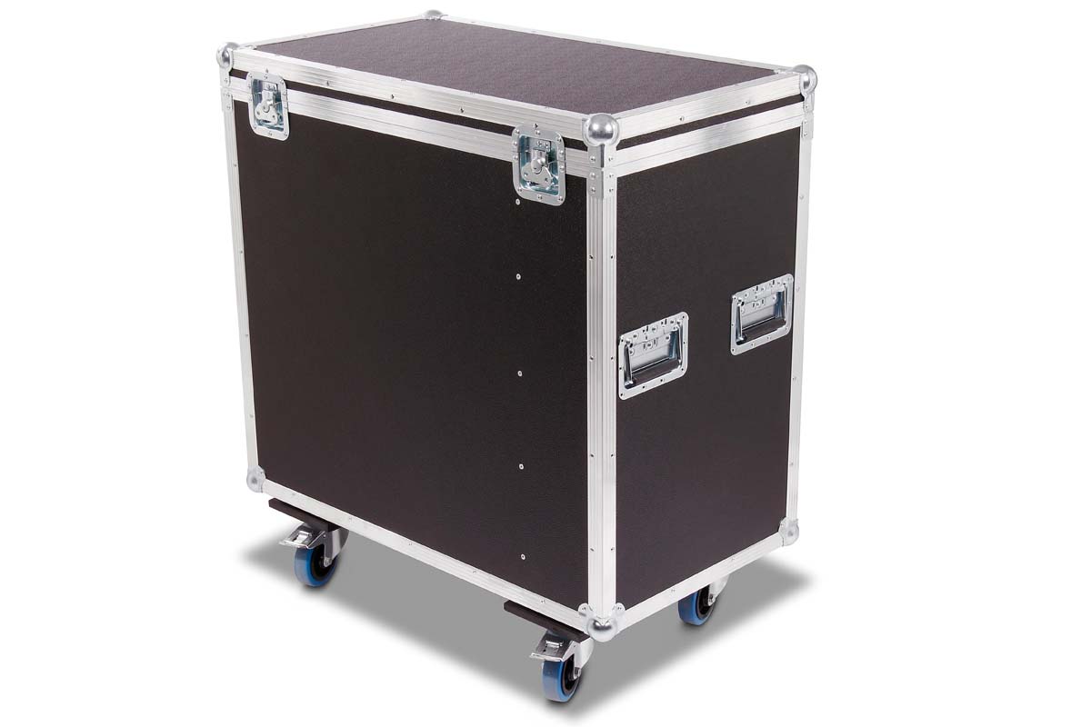 Truhencase auf Rollen (2x gebremst) mit Schaumstoffpolsterung und Zubehörfach.