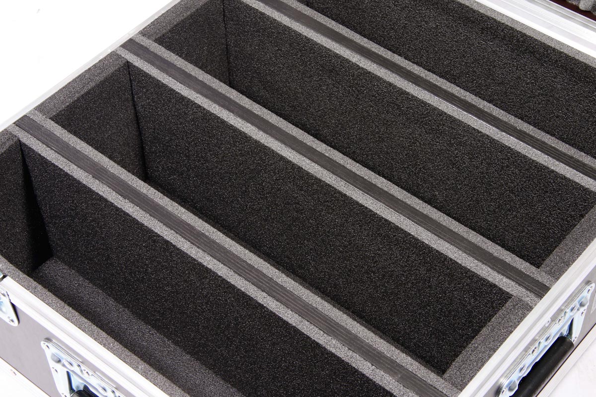 4 PixBar 500 passen in diese Truhe auf engstem Raum. Sicher getrennt sitzen die LED in einem Schaustoffbett.