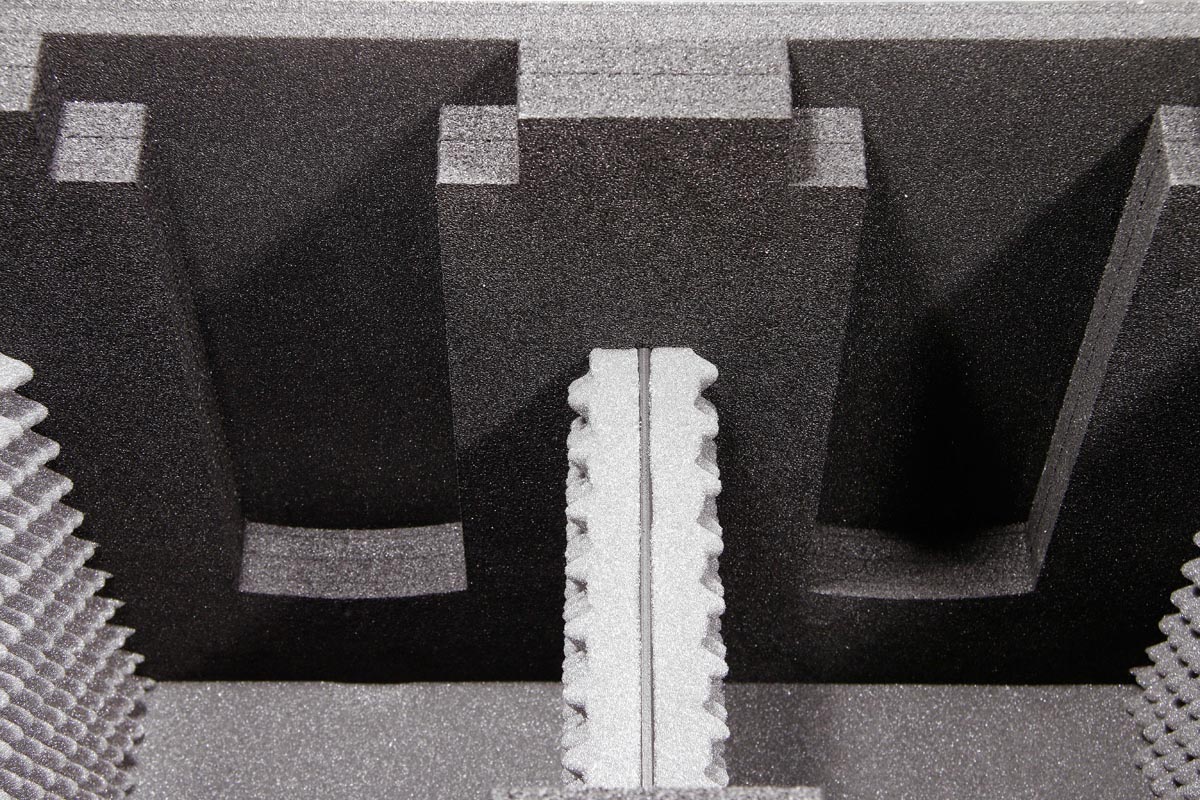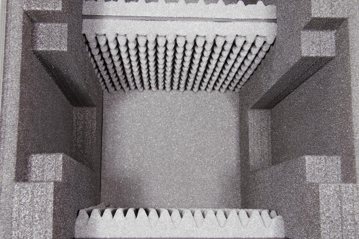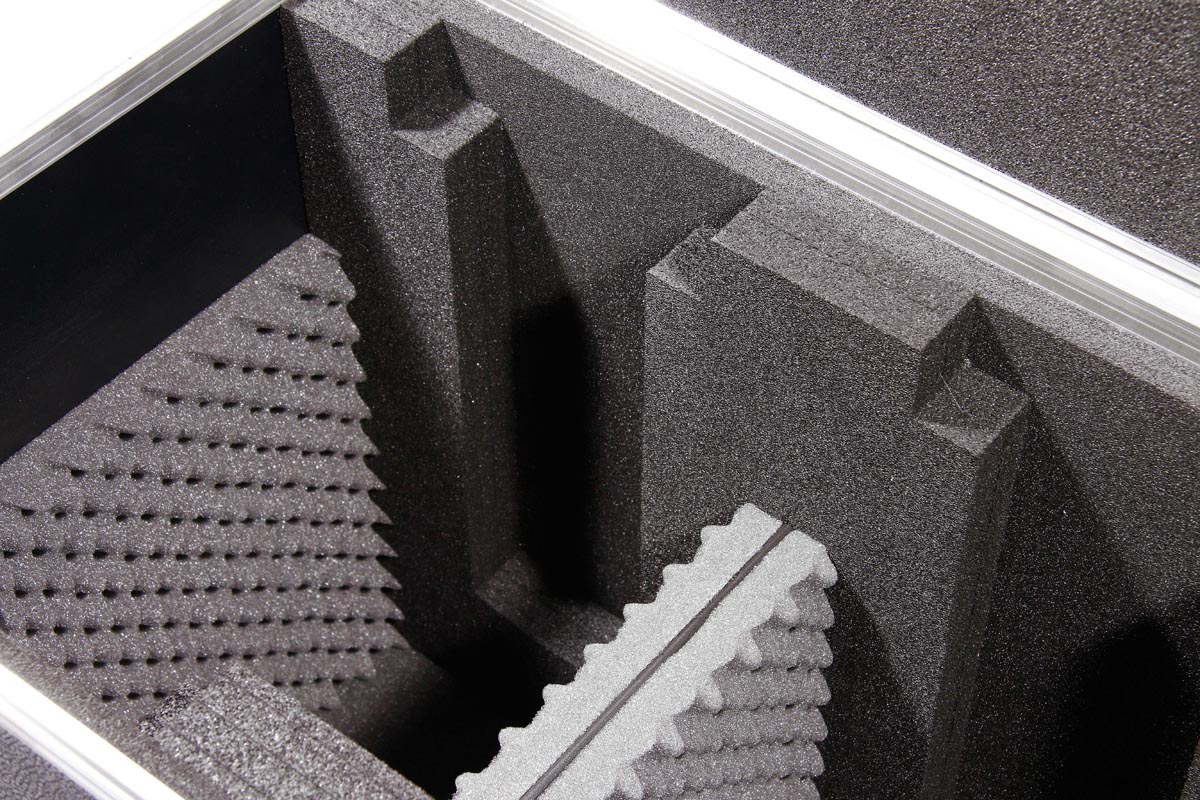 Die A.LED B-Eye K10 Easy sitzen in Fächern die mit Schaumstoff gepolstert sind.