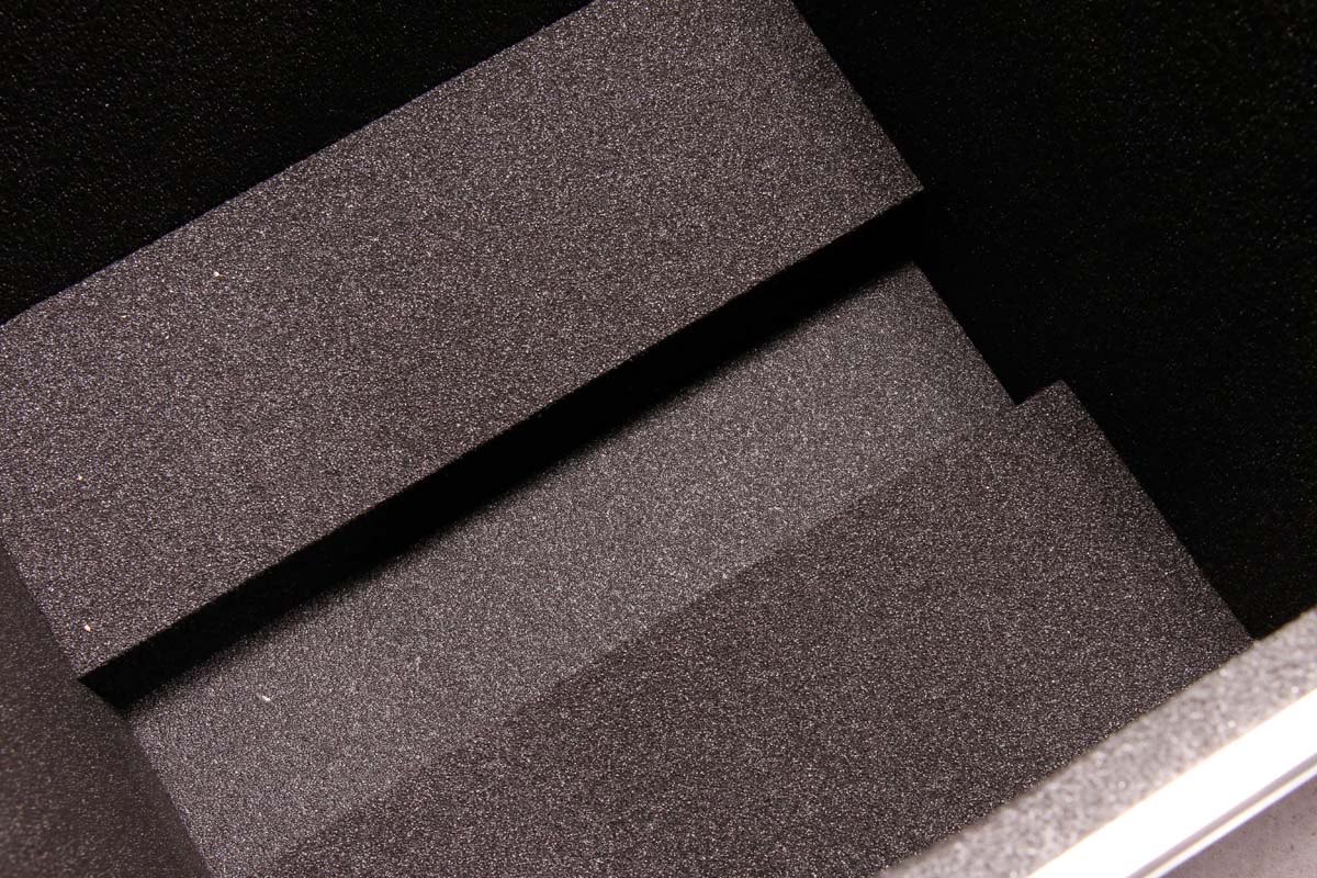 passendes Case mit Schaumstoffpolsterung und Fachunterteilung