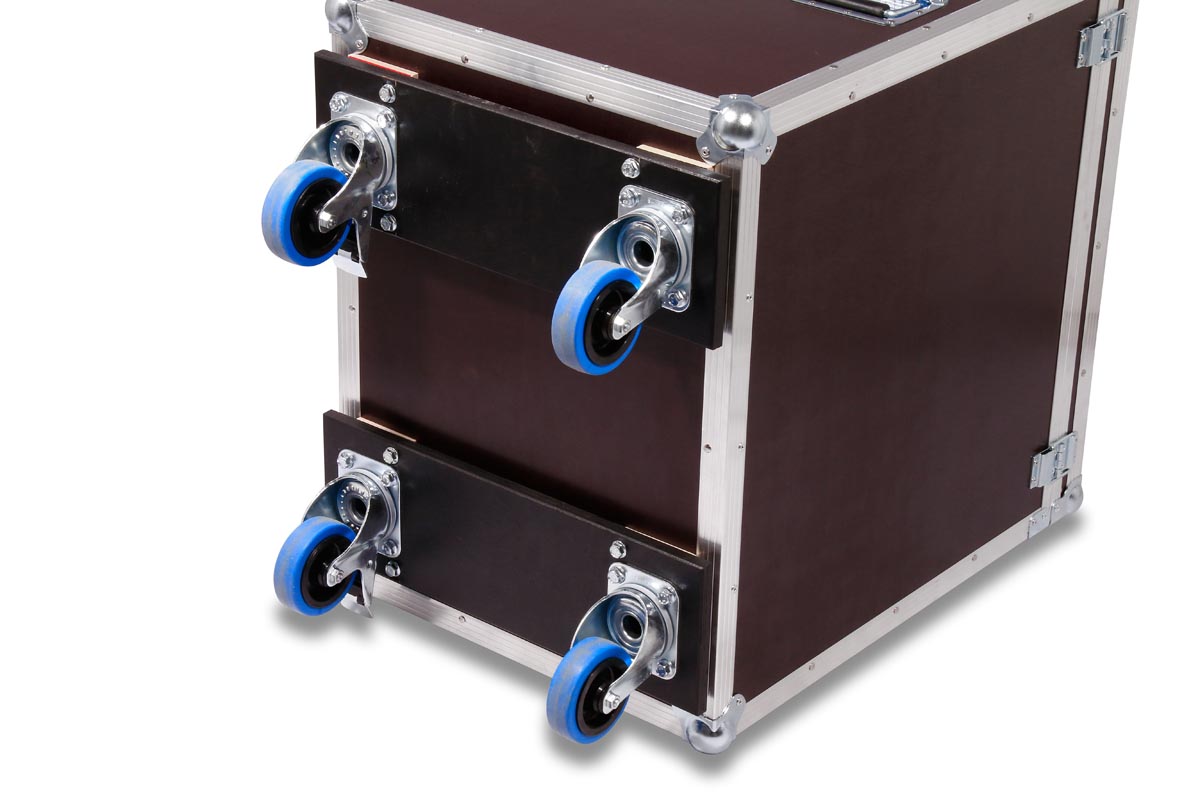 Transporttruhe mit 4 Lenkrollen für 2 Monitorboxen Dynacord CMX 15.