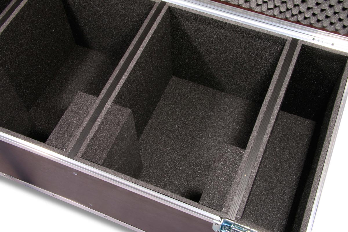Truhe mit 4 gepolsterten Fächern für die Fresnell TW 300 Spot und einem Zubehörfach.