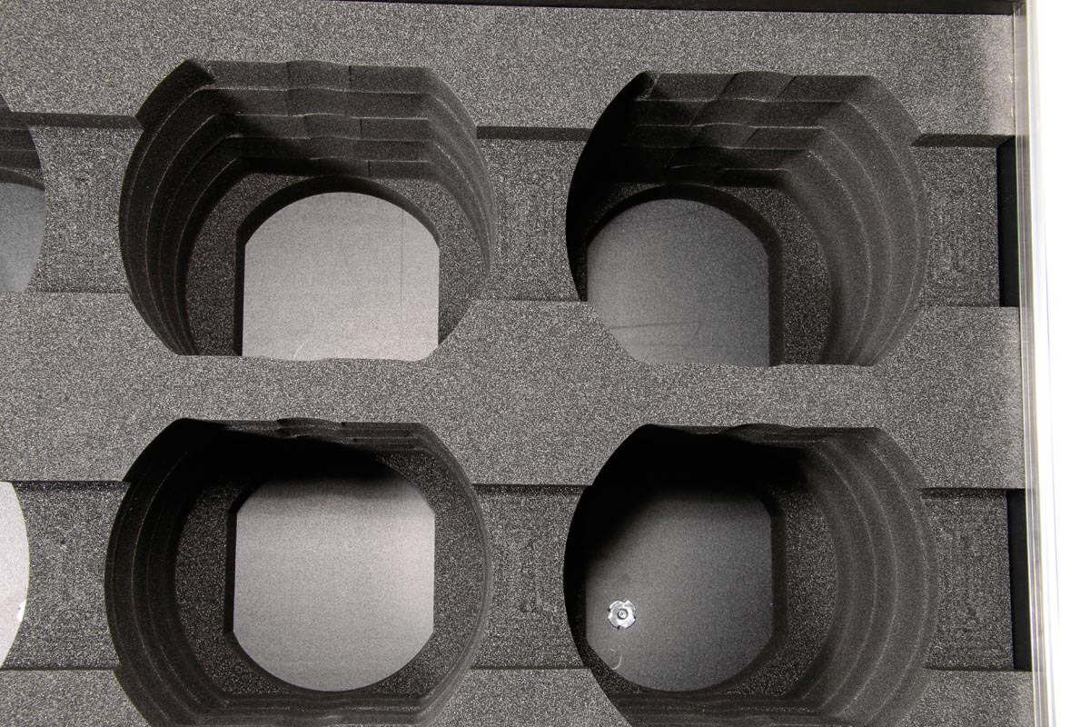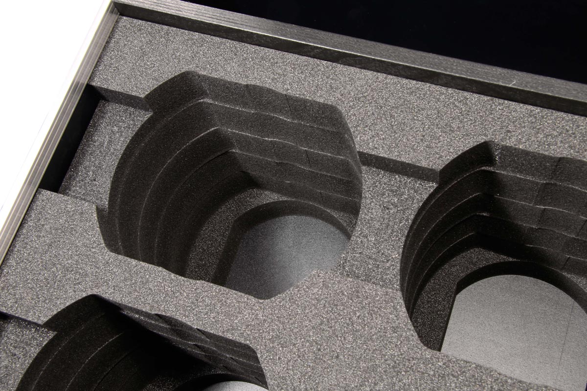 perfekt in die Inlays ein. Nichts stößt an oder wackelt. Sicher ist sicher. Zwei Zubehörfächer nehmen