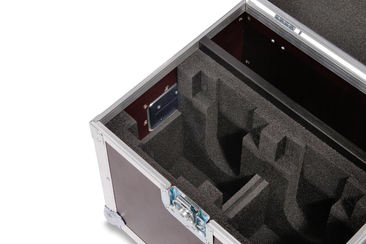 Zwei Kammern enthalten Schaumstoffinlays, die optimal für die Scheinwerfer gefräst wurden.
