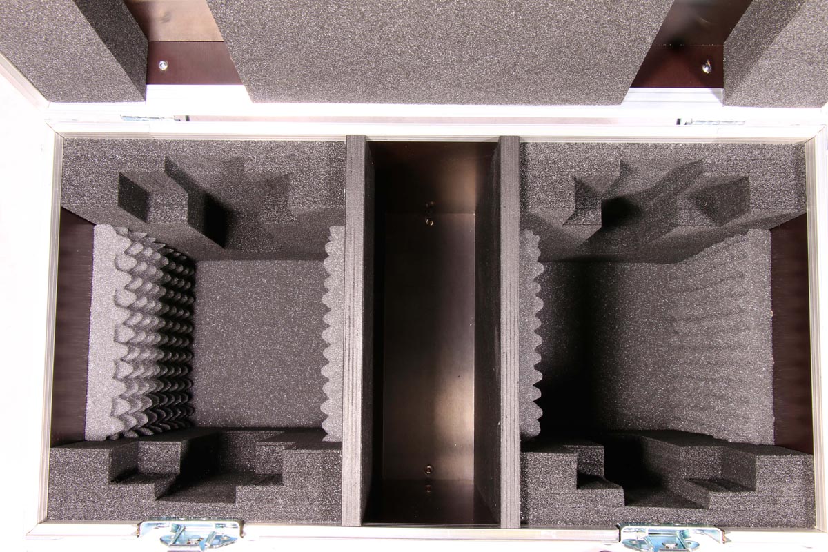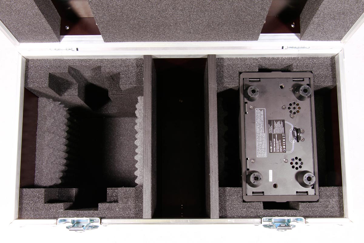 Truhe für 2 Moving Spot Heads Ventus S40 von Involight mit CNC geschnittenem Inlay.