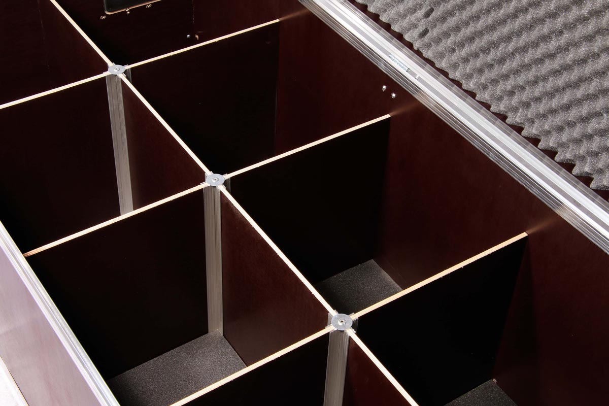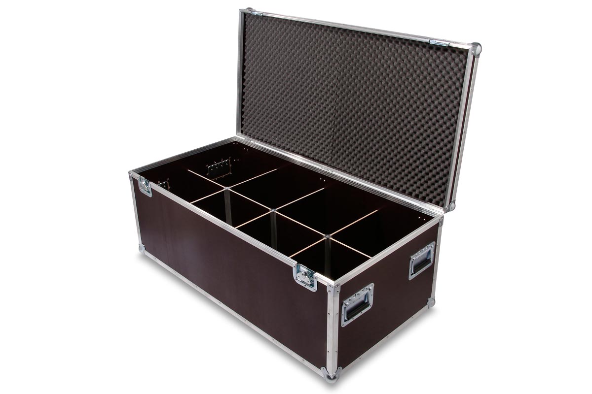 Chest case with 8 compartments for LED PAR 64 short spotlights.
