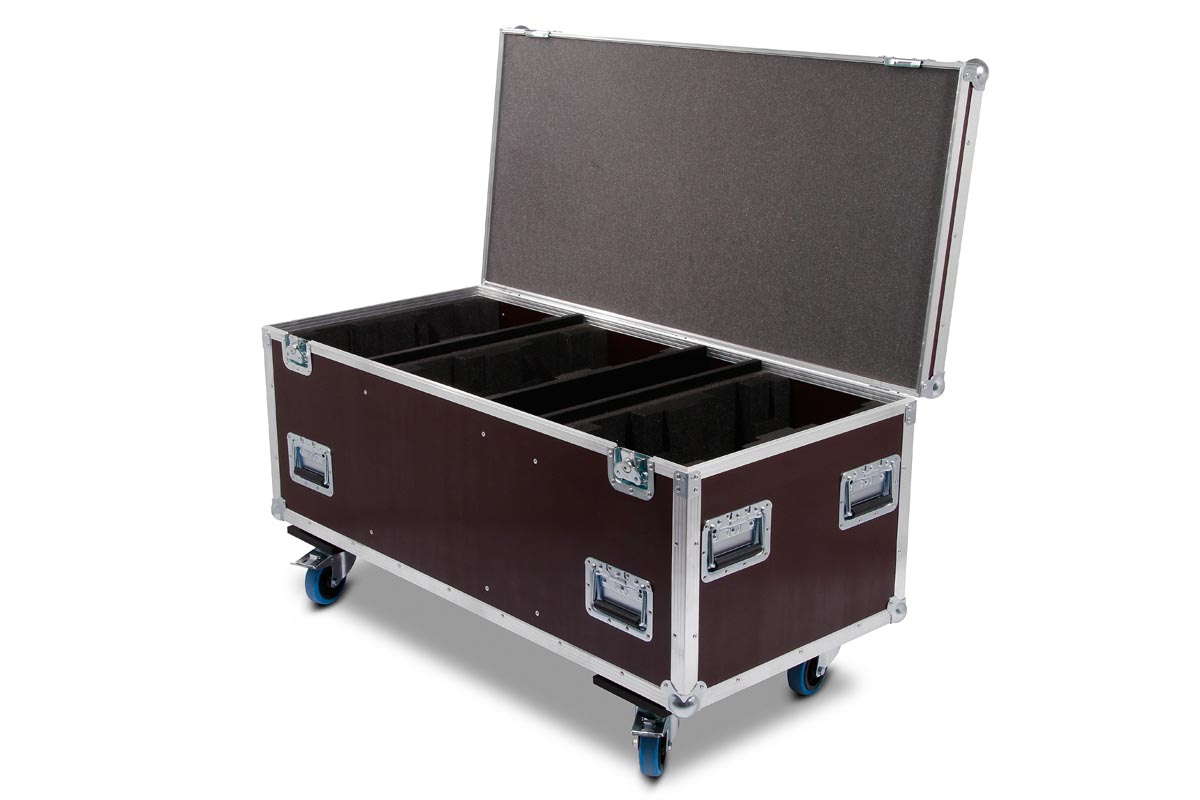 Für sechs der Moving Heads bietet diese Truhe optimalen Platz. In die einzelnen Kammern