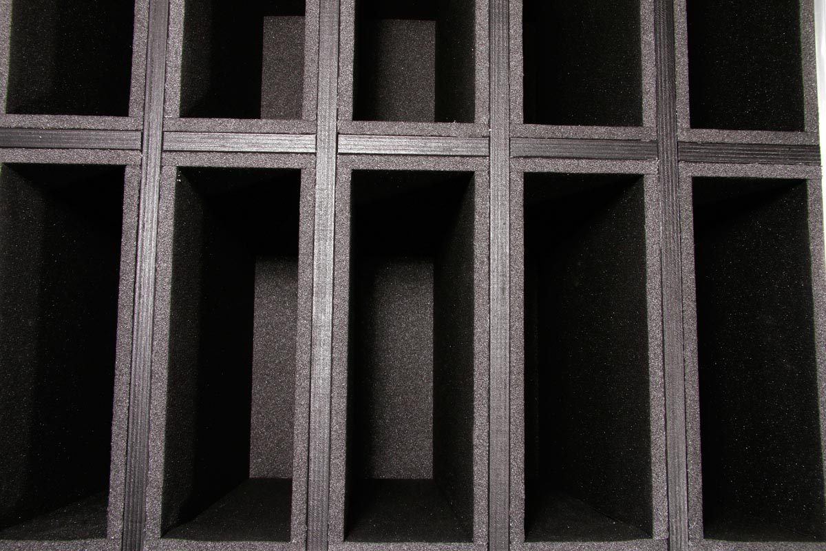 Tranport -und Lager Truhe mit zehn in eins Fachunterteilung. Die einzelnen Fächer sind mit 1 cm dickem Schaumstoff ausgeklebt genau wie der Boden.