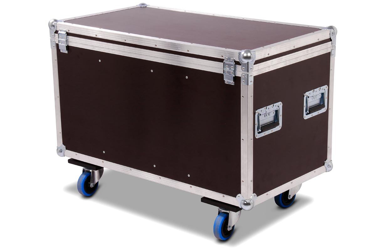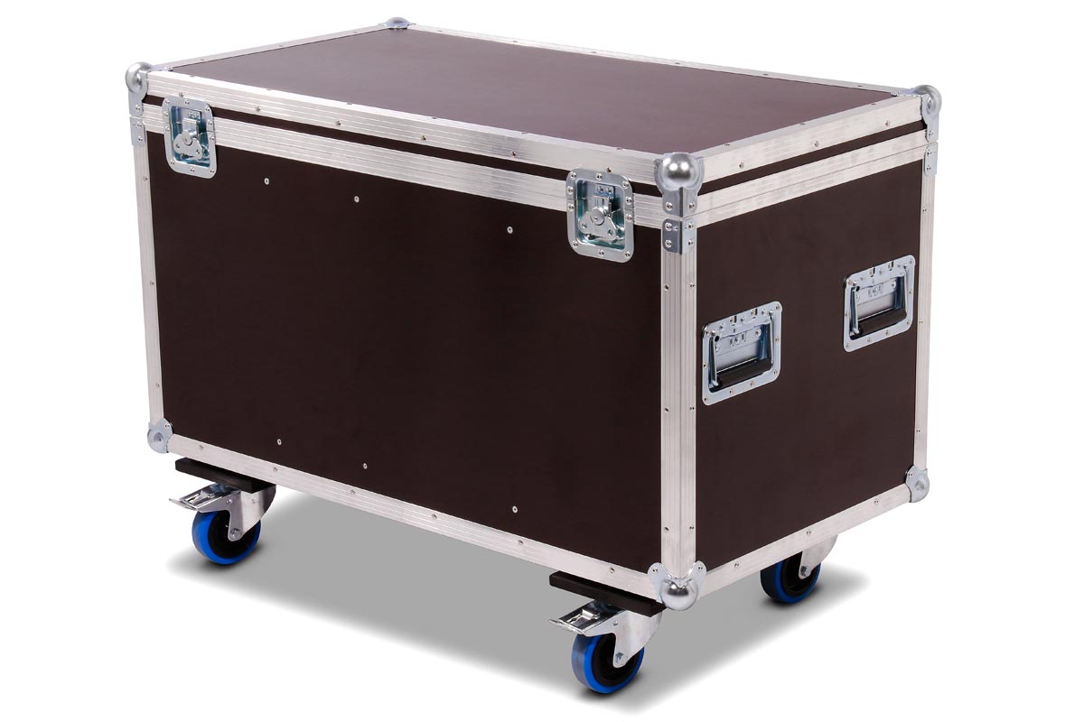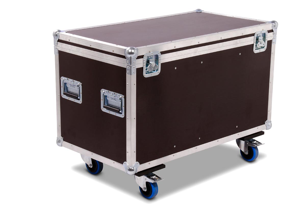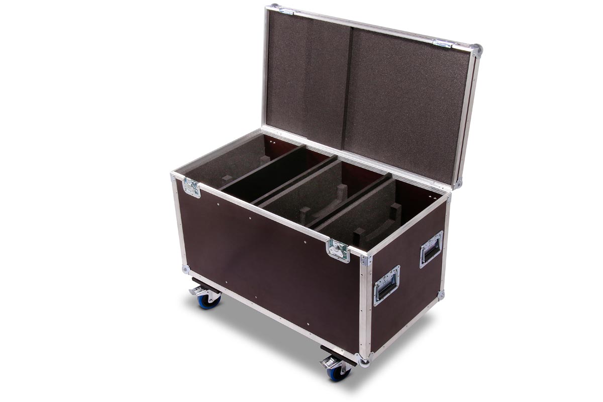 6 Stück des Moving Heads Showtec Phantom 50 LED Spot/Wash passen genau in diese Transport Truhe aus hochwertigen Materialien.