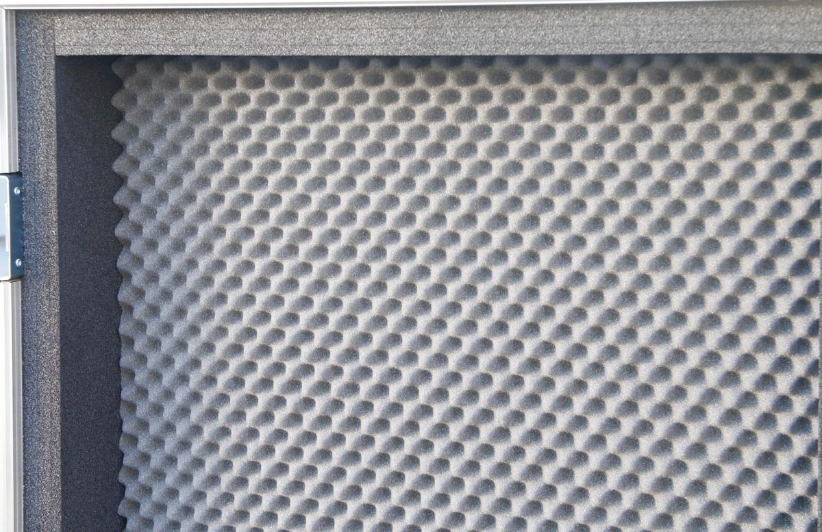Truhe mit dicker Schaumstoffpolsterung von 40 mm und noch zusätzlich Noppenschaumstoff im Deckel.