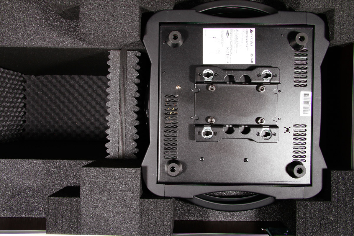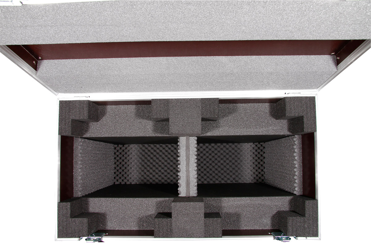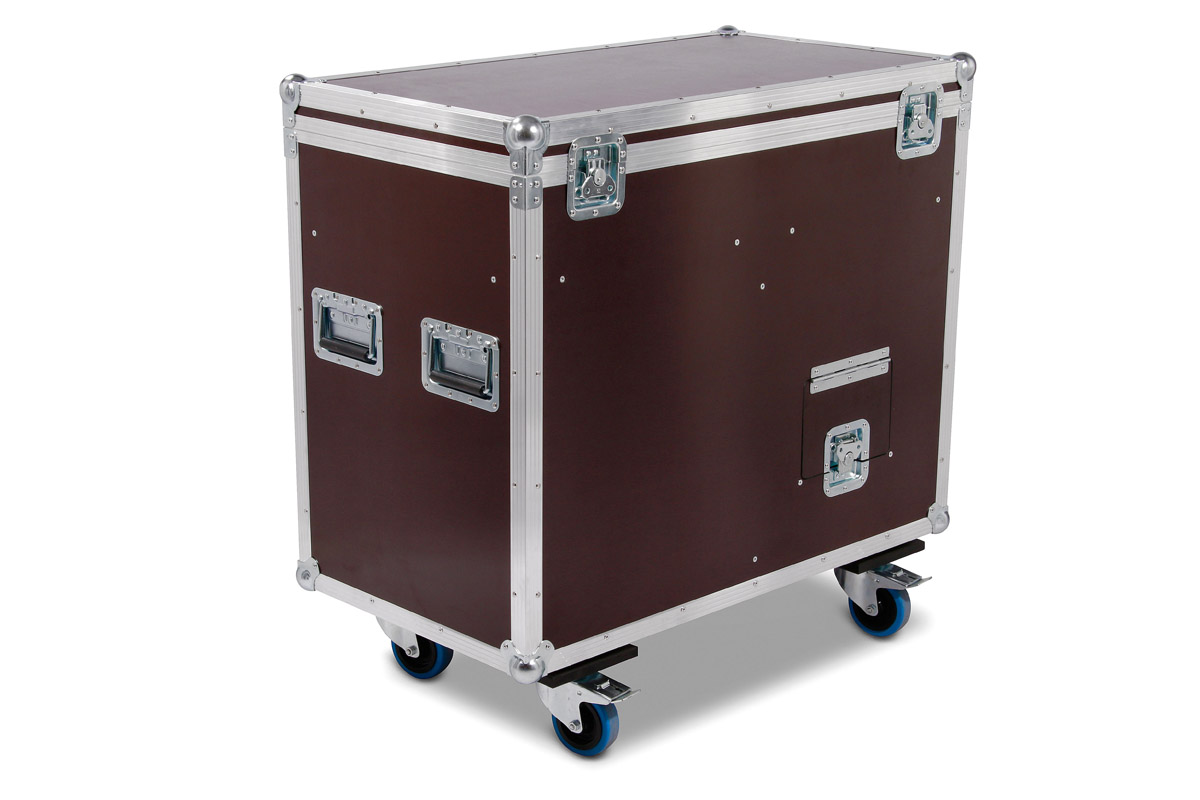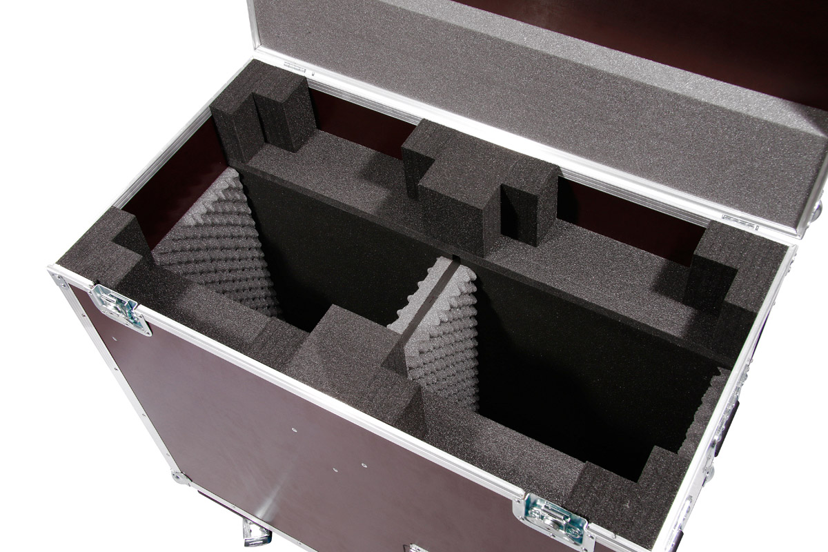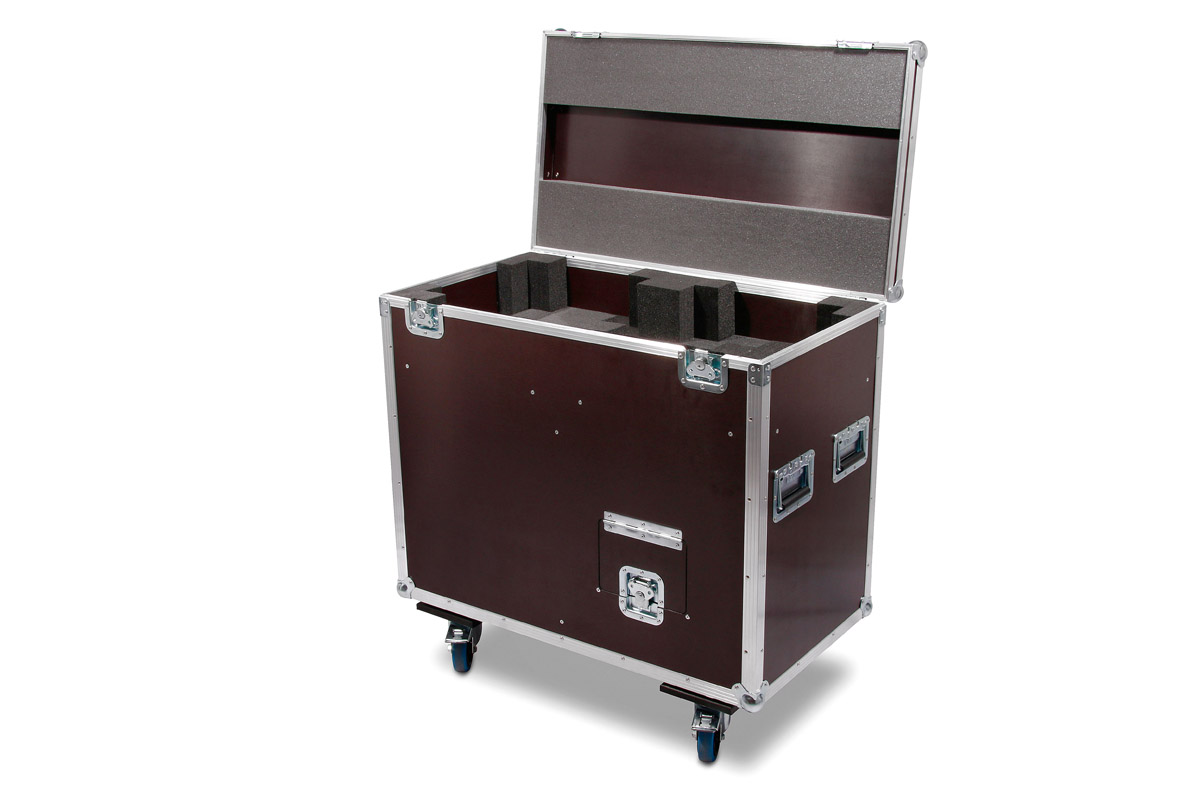 Für zwei der vielseitigsten Moving Heads, den Showtec Infinity iB-16R, wurde diese Transport Truhe konzipiert. Zwei von diesen Strahlern passen in das Flightcase. An der Front befindet sich noch eine abschließbare Klappe für Zubehör.