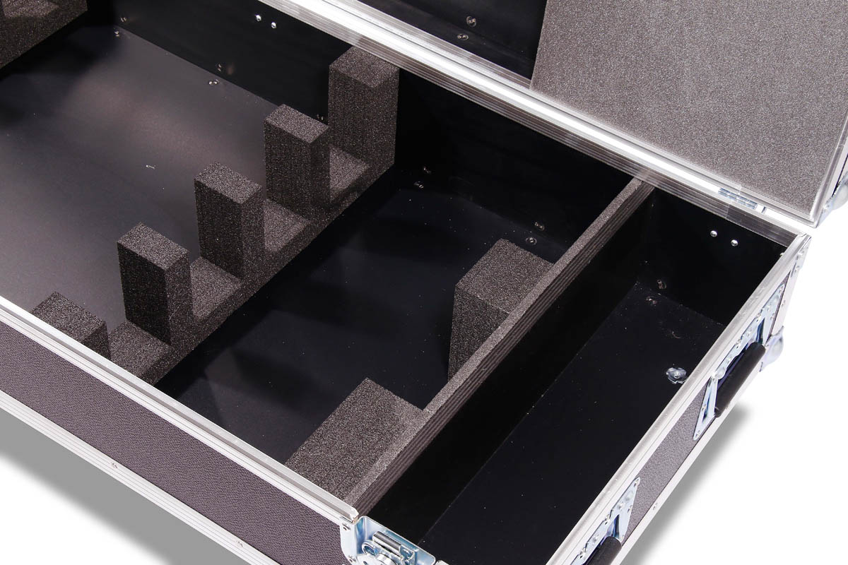 Truhencase auf Rollen mit Schaumstoffpolterung und Zubehörfach