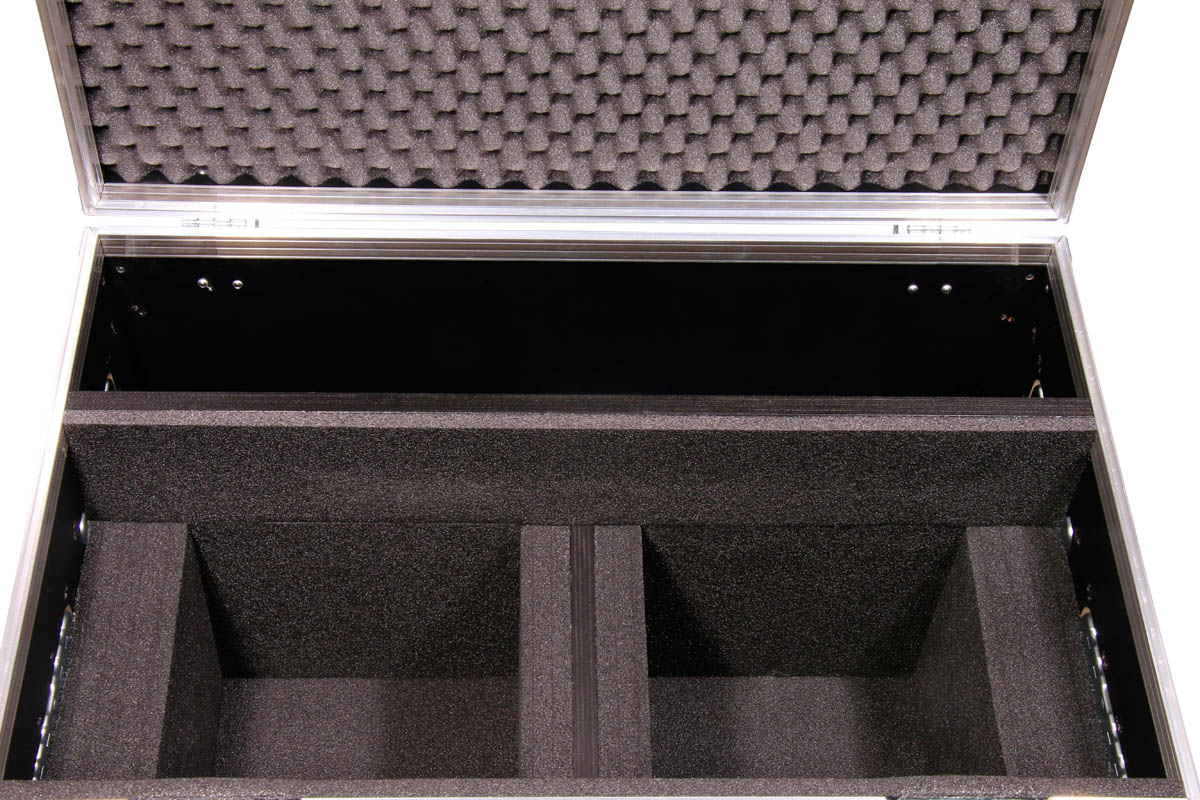 Truhencase auf Rollen mit Schaumstoffpolsterung und Zubehörfach