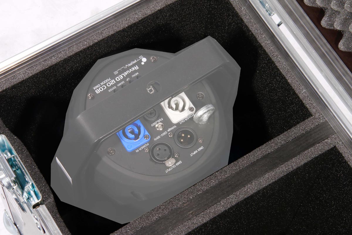 Live Truhencase für 2 Strahler Stairville Revue LED 120 COB RGB WW DMX.