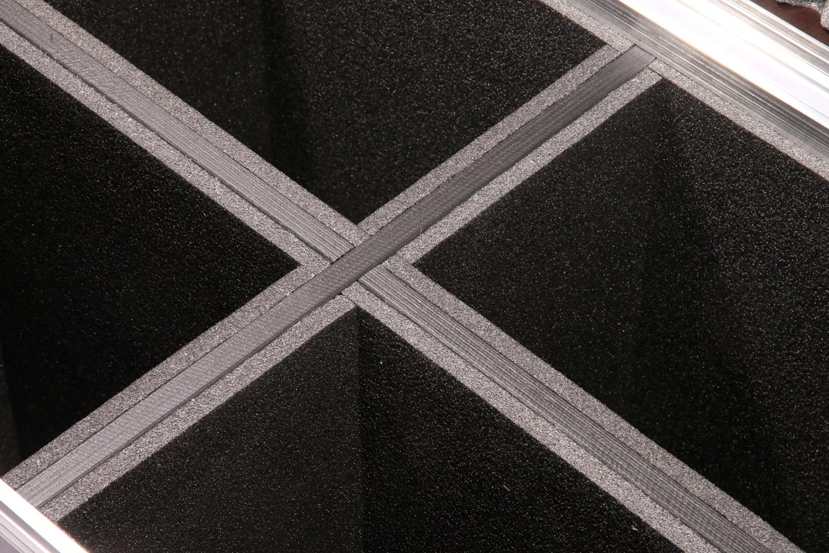 Die Kammern sind, jeweils mit 1 cm starkem Formschaumstoff, sowohl an den