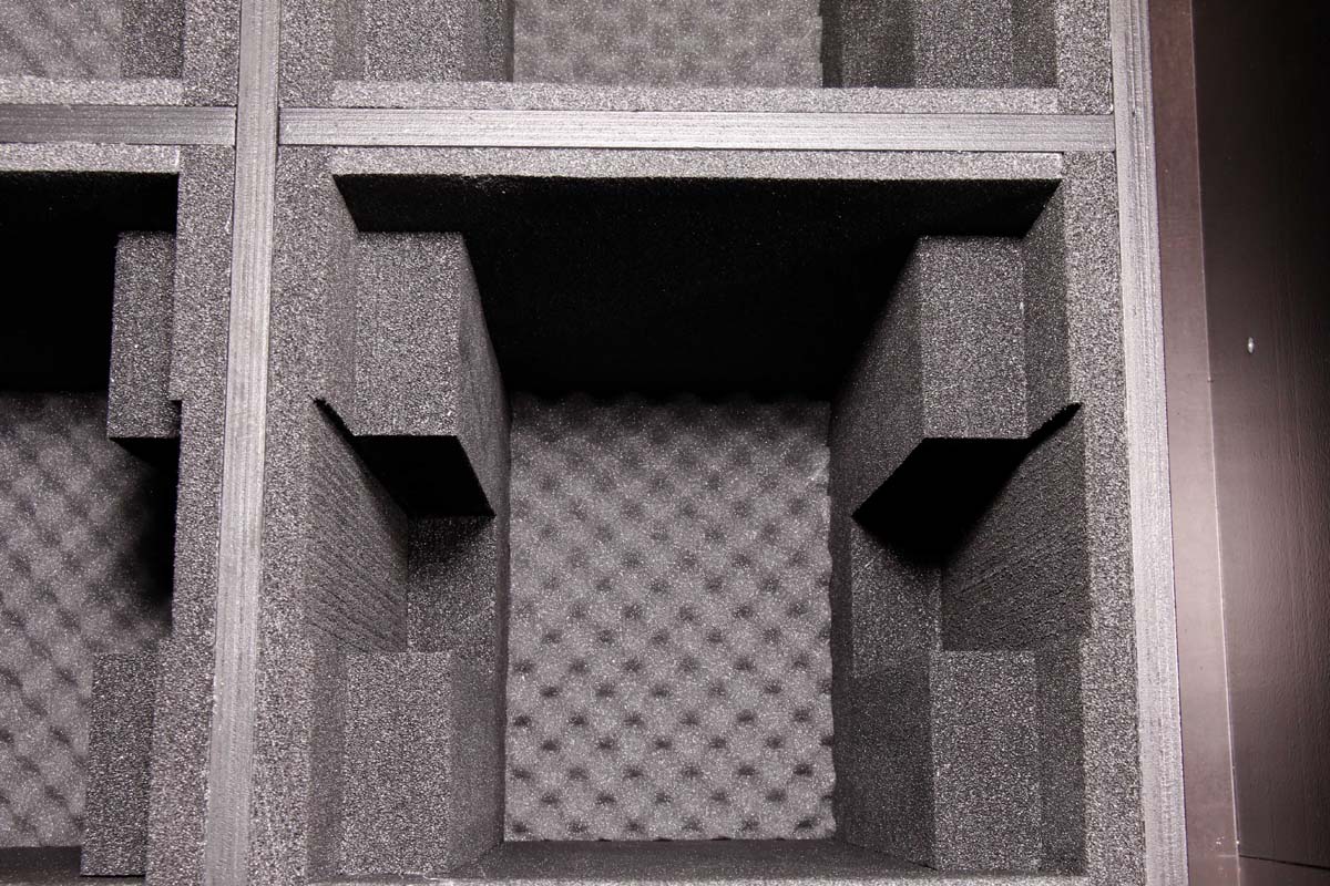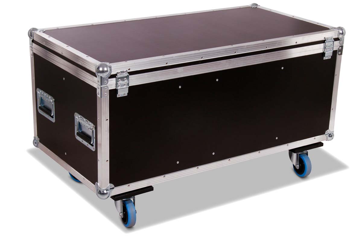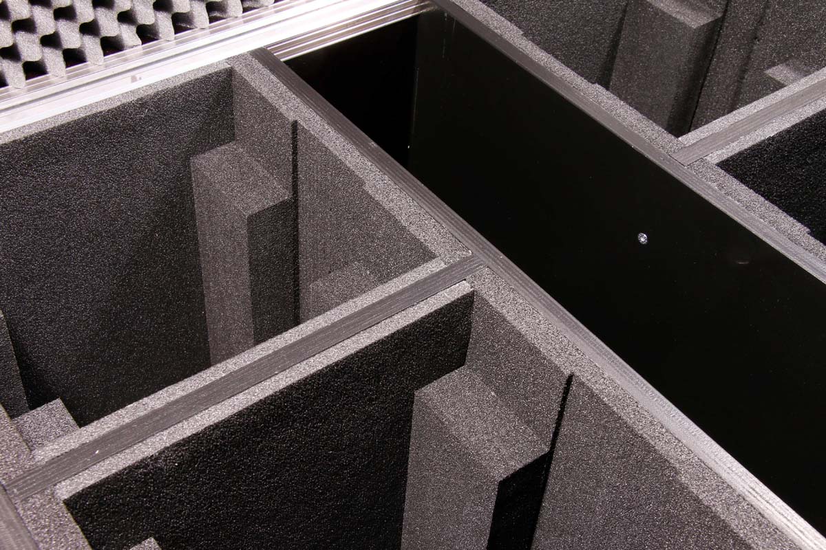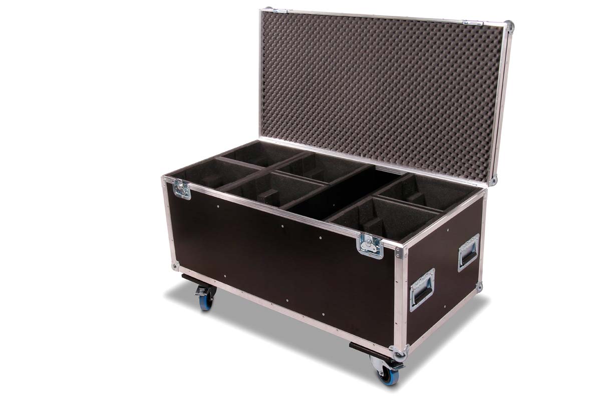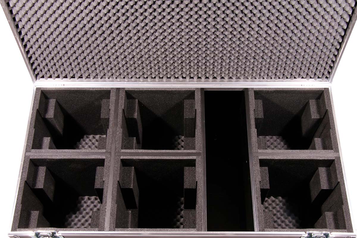 Maßgefertigtes Truhencase für 6 Varytec Hero Spot 90 u. einem Fach für Klammern, Kabel u. Zubehör.