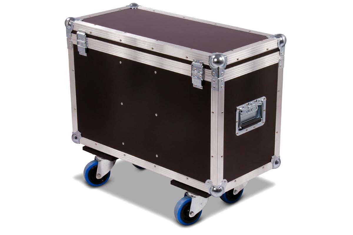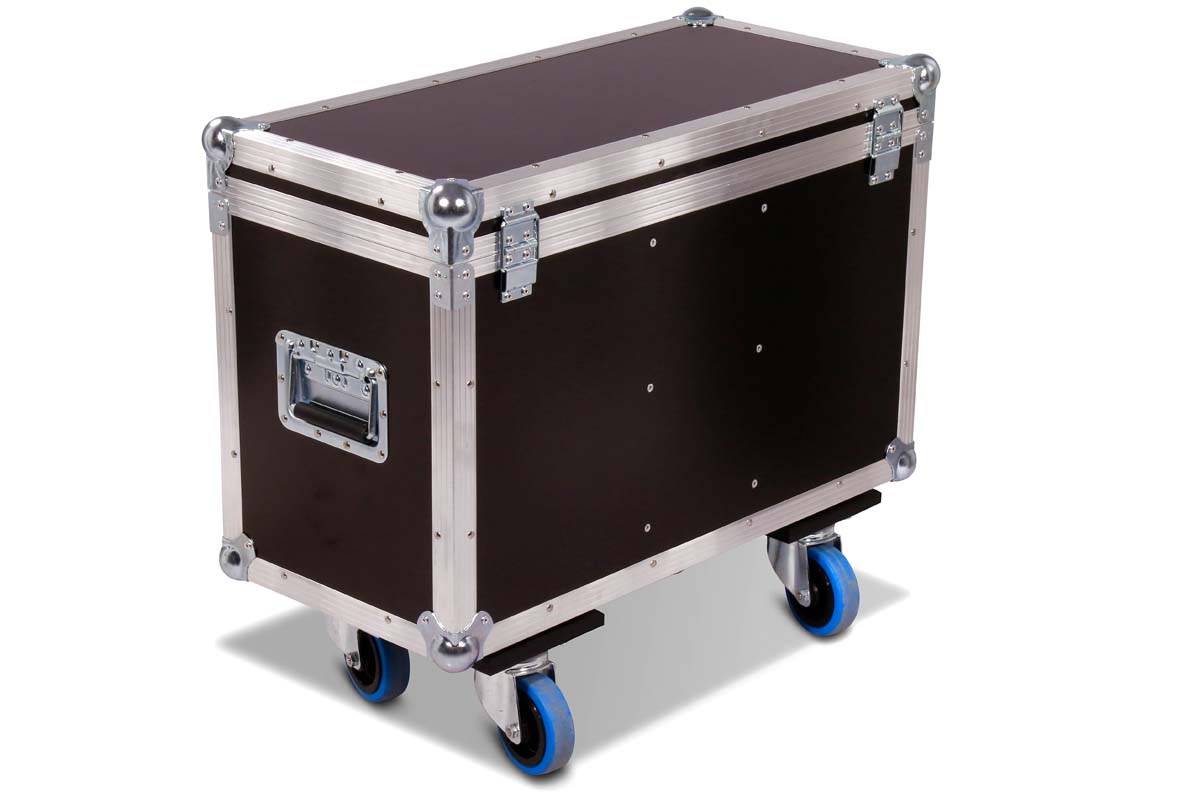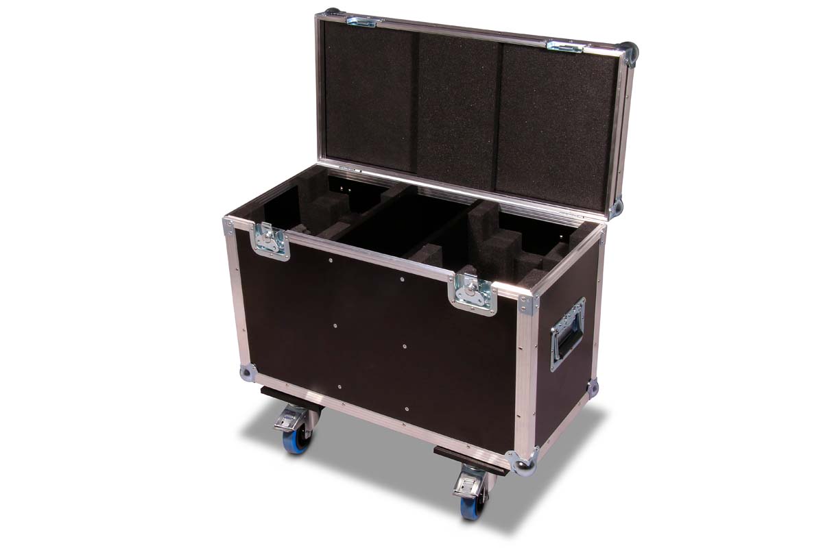 Maßgefertigtes Truhencase für 2 Varytec Hero Spot Wash 140 mit zentralem Zubehörfach