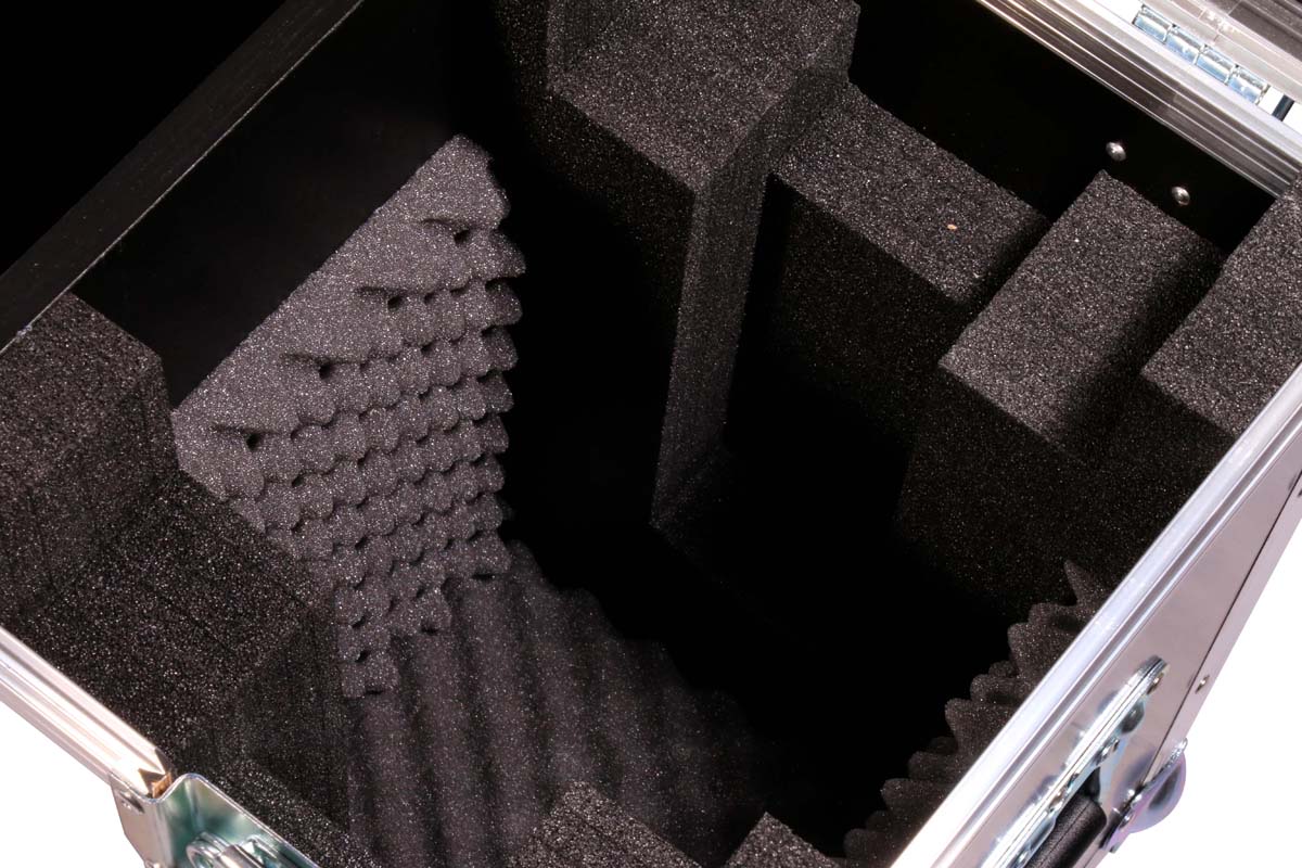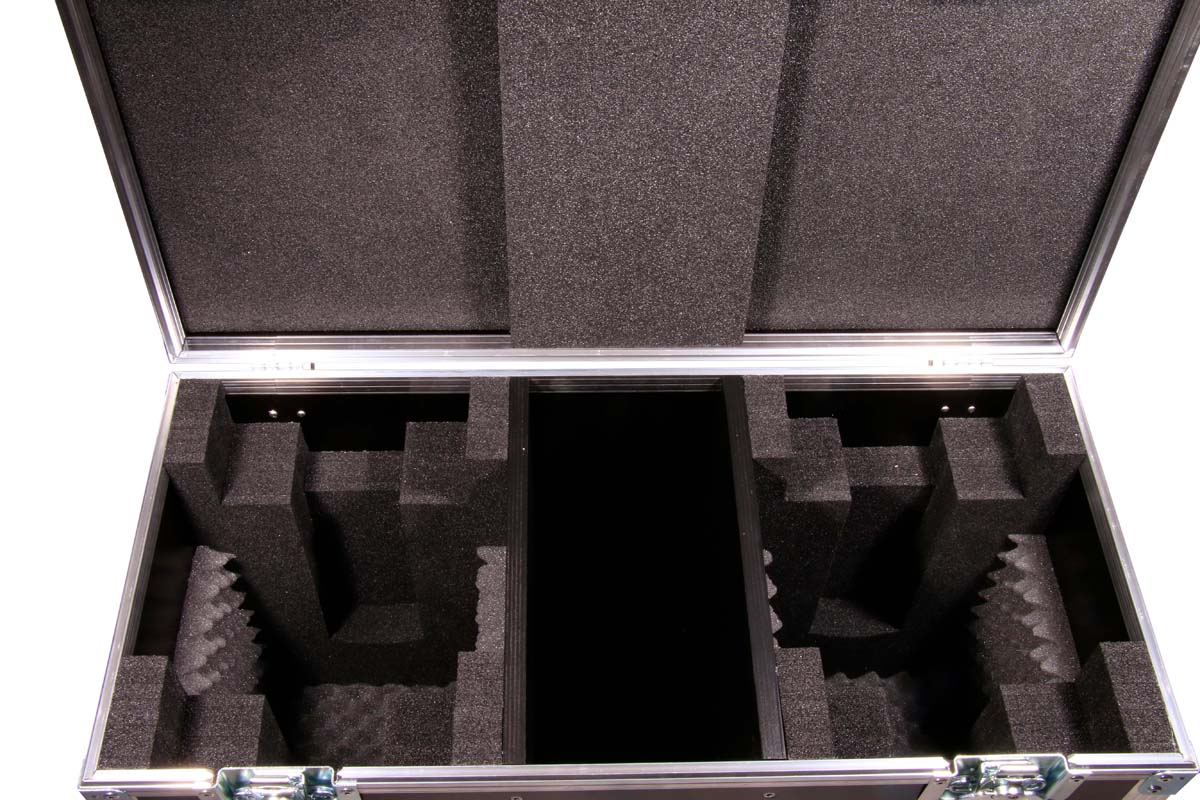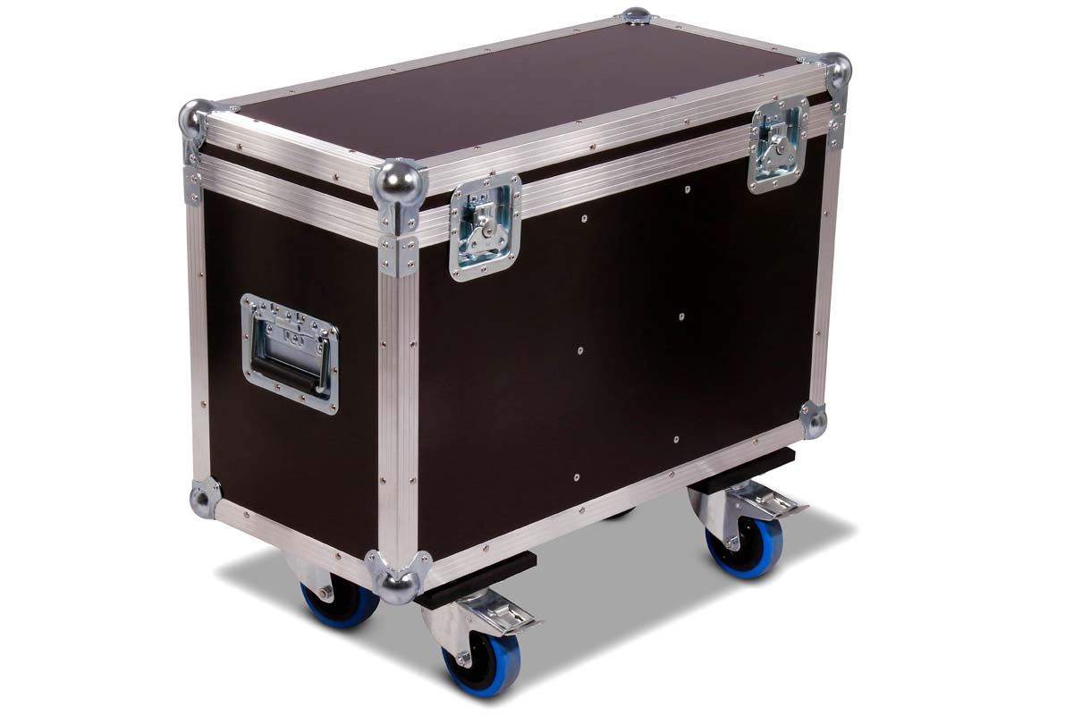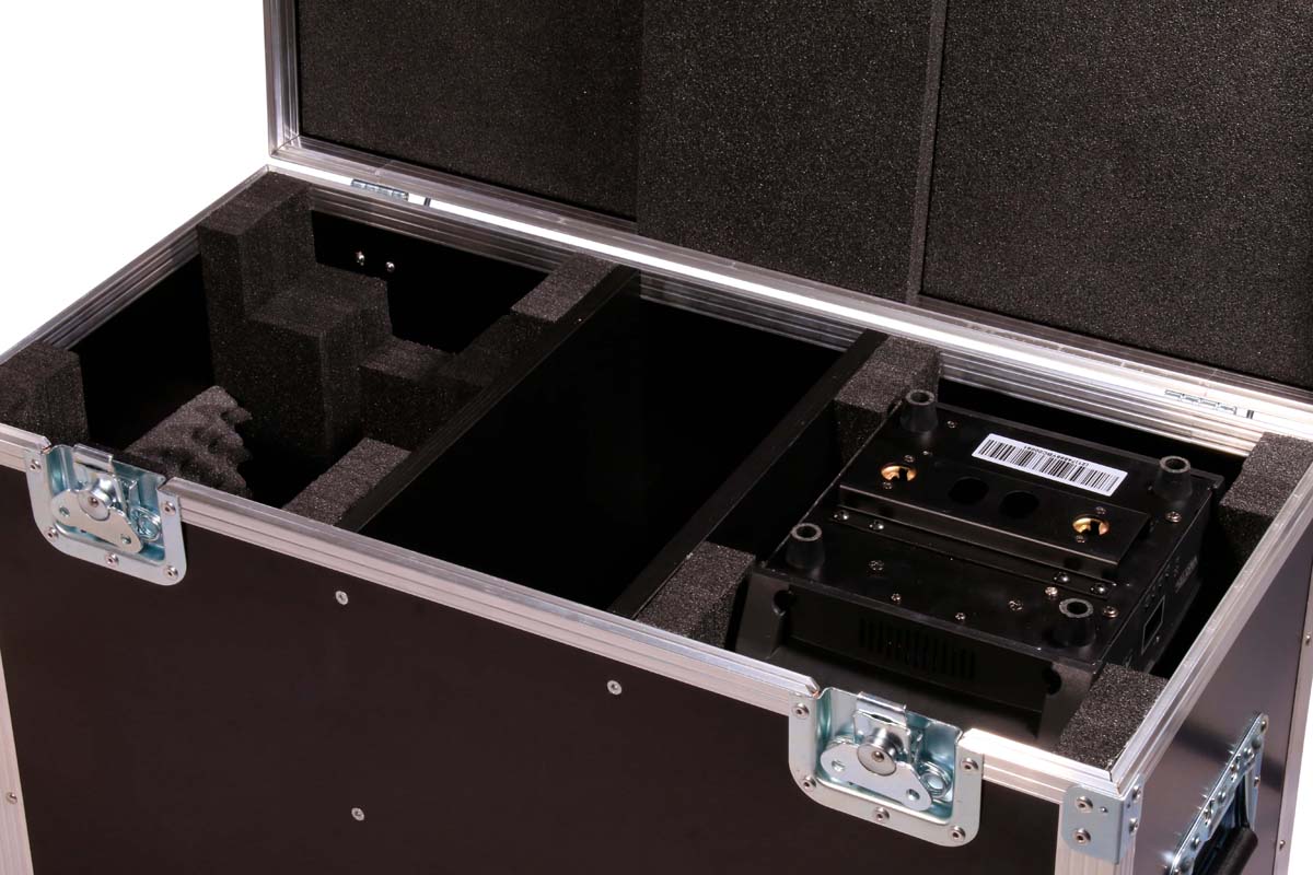 Maßgefertigtes Truhencase für 2 Varytec Hero Spot Wash 140 mit zentralem Zubehörfach