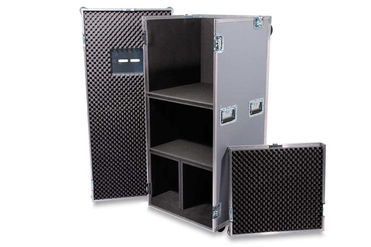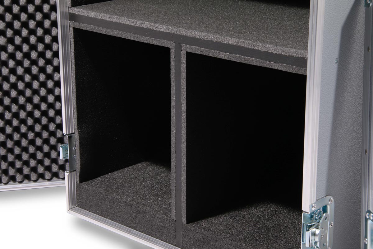 Winkel Rack mit zwei Deckeln zum abnehmen. 4 Fächer im Innenraum sind mit Schaumstoff
