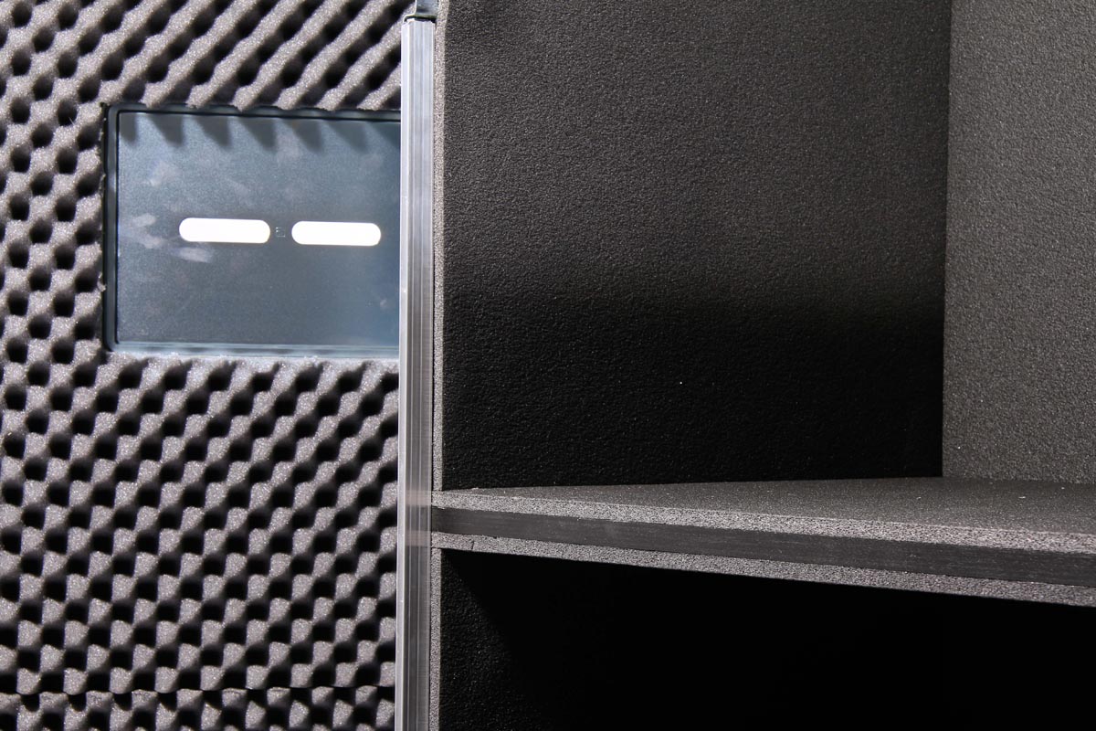 ausgekleidet und schützen so das Medien Equipment vor Beschädigungen. In das Schaufenster