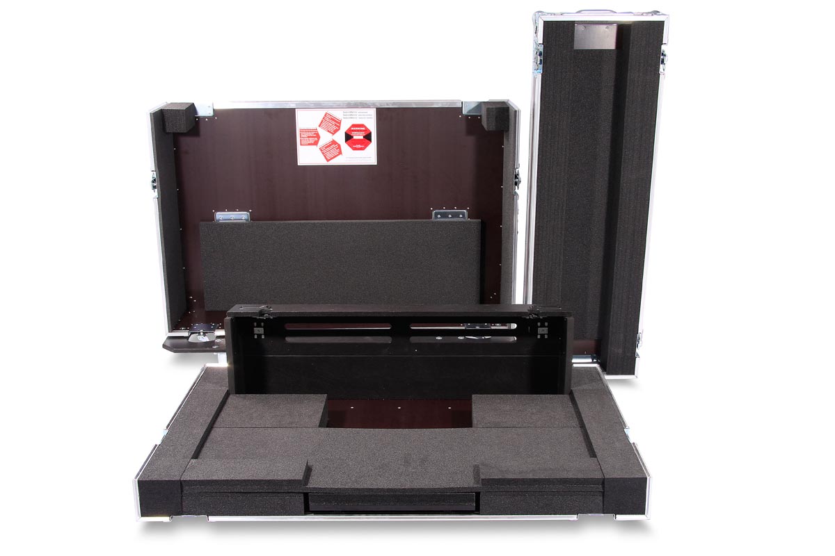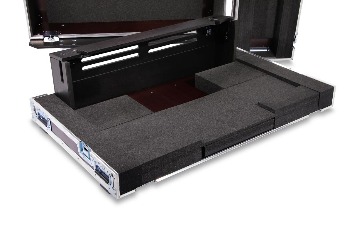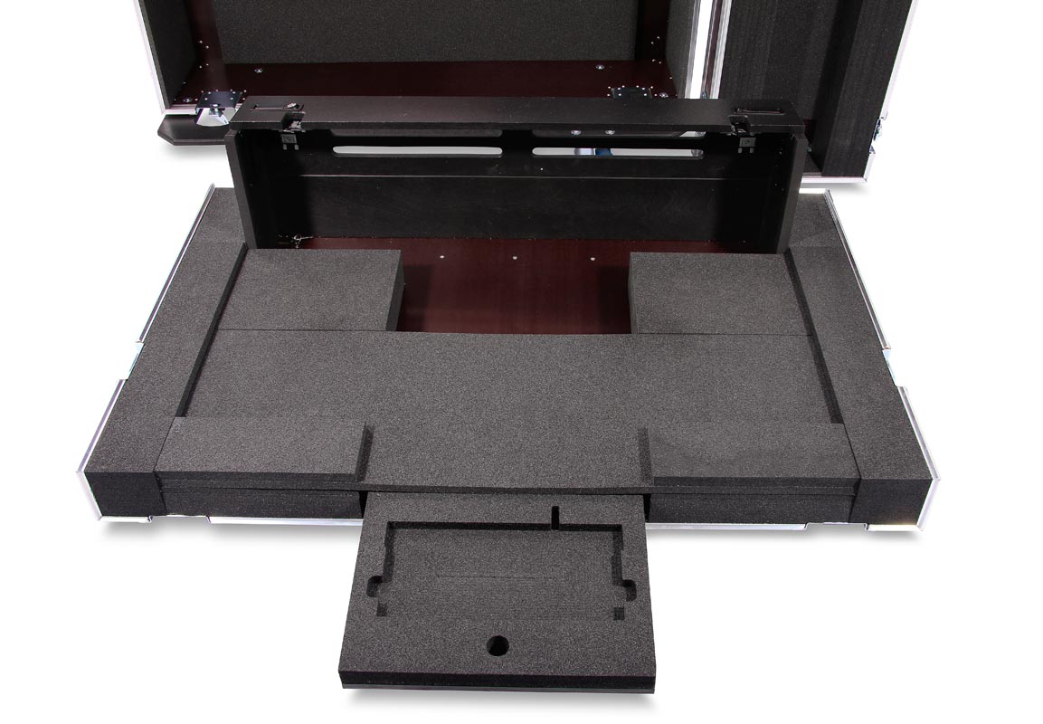 Unterhalb des Mixers befindet sich noch ein gefrästes Schaumstoffinlay mit Kugelvollauszügen für die Tastatur.