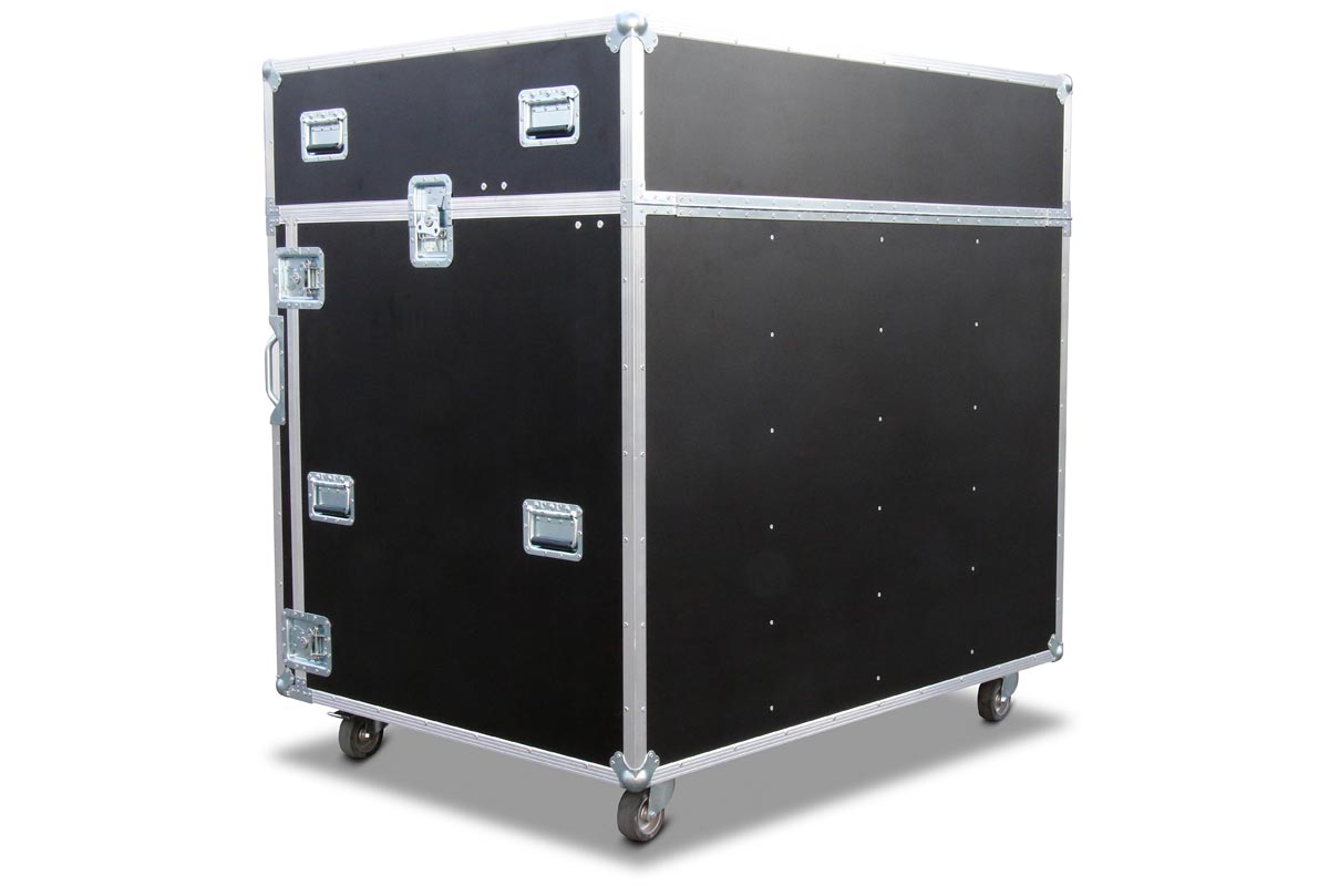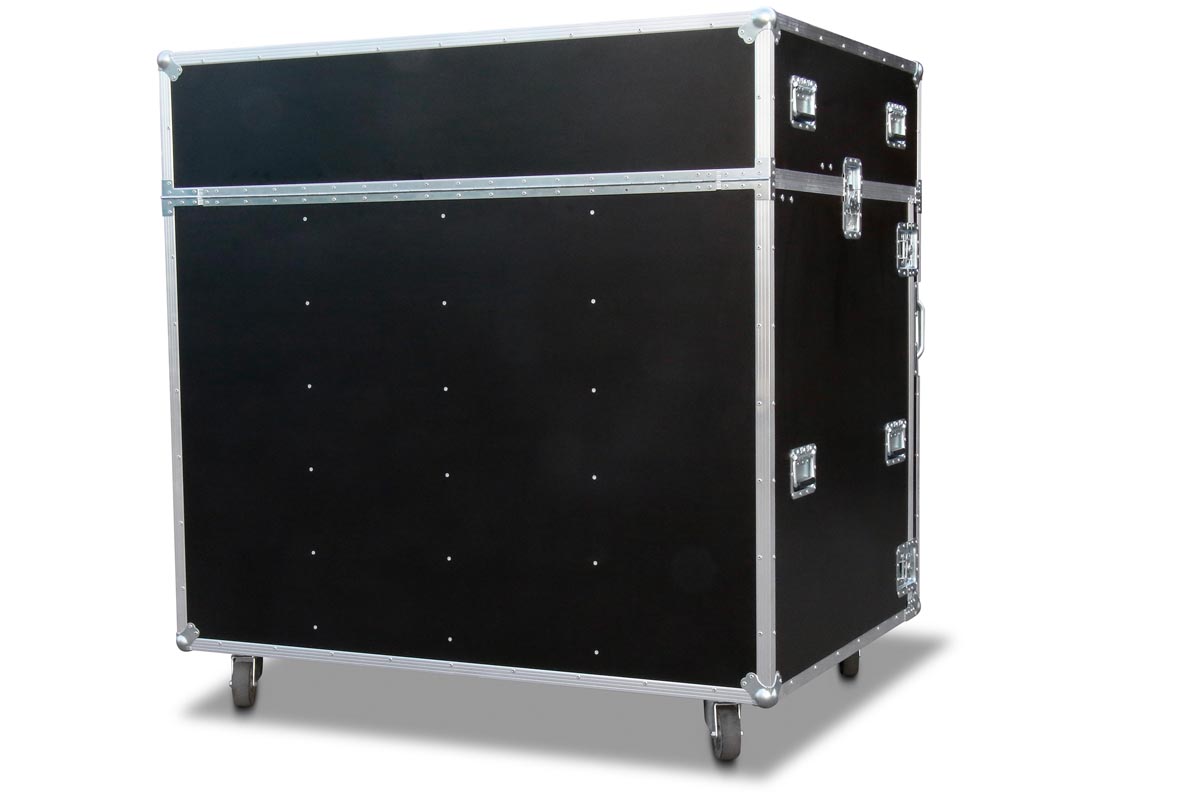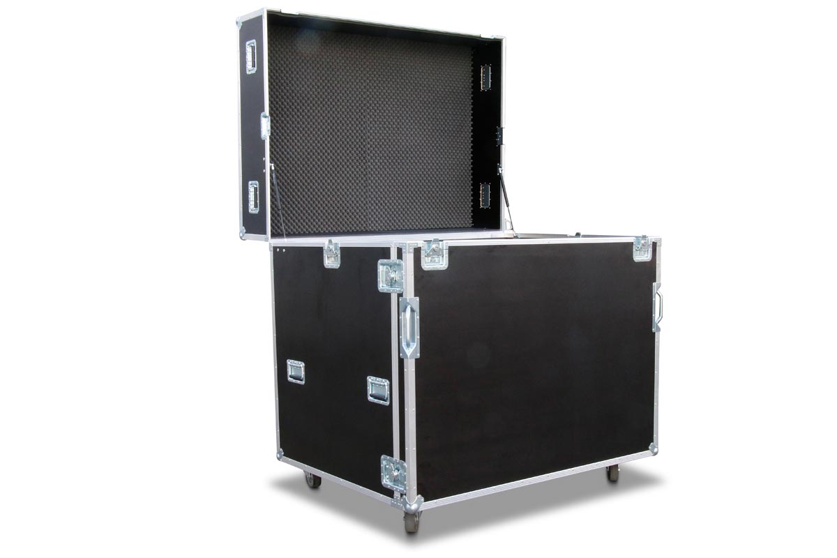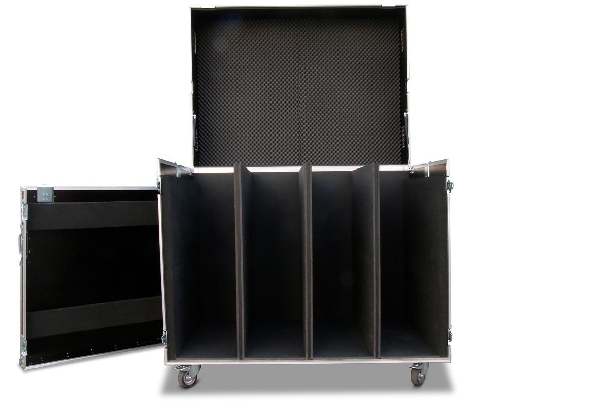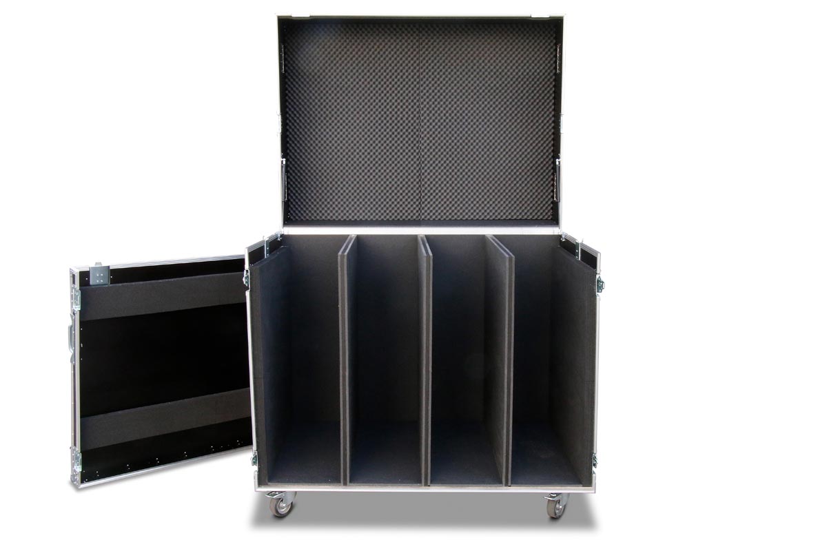 Winkel Case mit 4 großen Fächern, Deckel mit Gasdruckfeder und Lenkrollen.