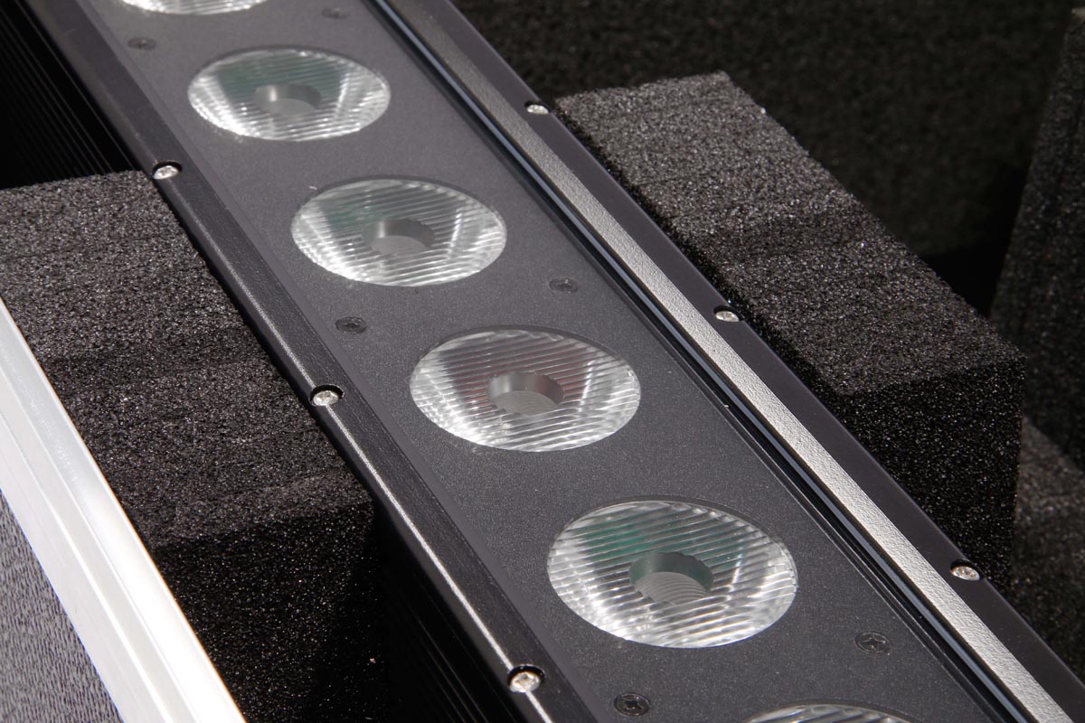 Die Lichtleisten sitzten sicher in 2 Schaumstoffrechen (Kämmen). In einem ca. 10 cm breiten Fach findet allerlei Zubehör wie Klammern und Kabel Platz.